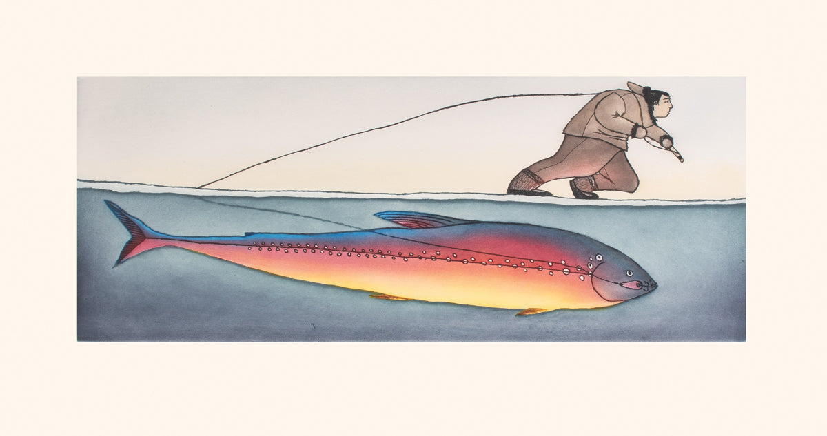 Her artworks often feature themes related to Inuit mythology, daily life, and the natural environment, showcasing a blend of traditional and modern perspectives. Teevee’s prints and drawings are known for their intricate details and vibrant depictions of Inuit life and folklore.