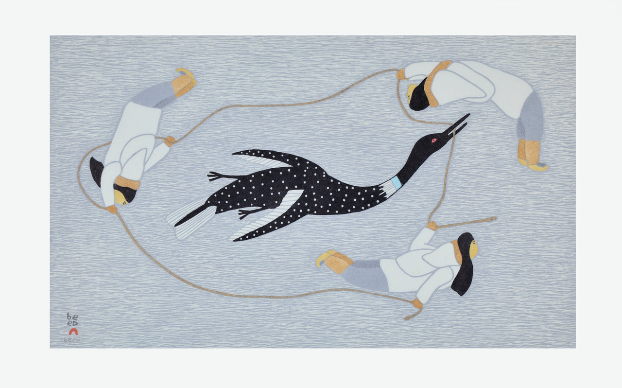 Her artworks often feature themes related to Inuit mythology, daily life, and the natural environment, showcasing a blend of traditional and modern perspectives. Teevee’s prints and drawings are known for their intricate details and vibrant depictions of Inuit life and folklore.