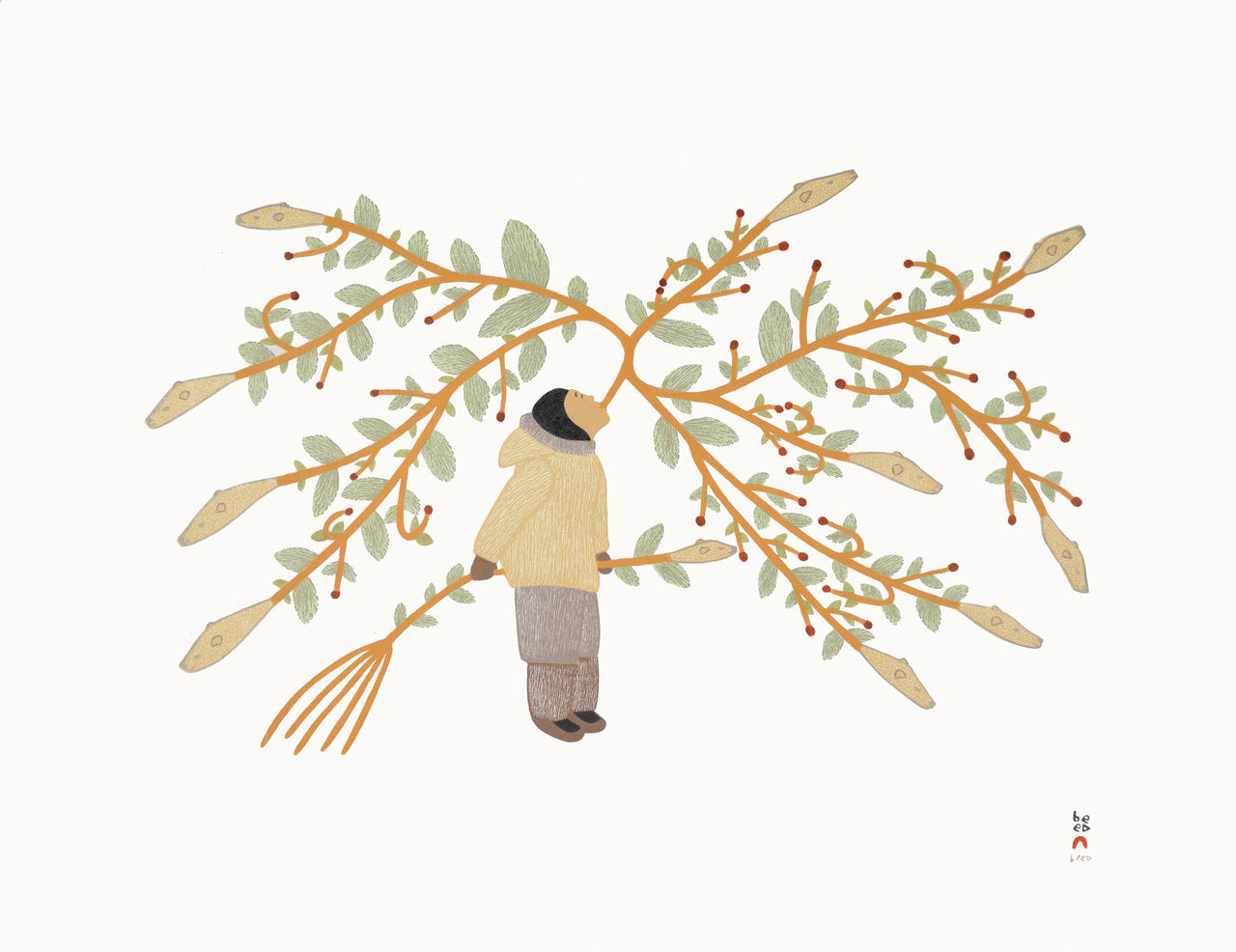 Known for his playful and whimsical style, Manumie incorporates surreal elements, like anthropomorphic animals, that challenge conventional narratives. Despite these imaginative touches, his work remains deeply rooted in Arctic cultural and environmental realities.