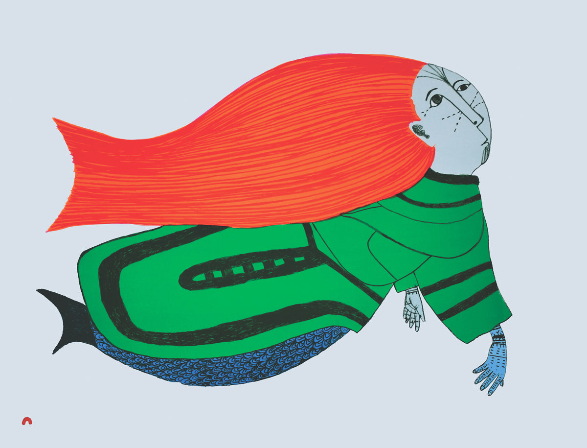 Her artworks often feature themes related to Inuit mythology, daily life, and the natural environment, showcasing a blend of traditional and modern perspectives. Teevee’s prints and drawings are known for their intricate details and vibrant depictions of Inuit life and folklore.