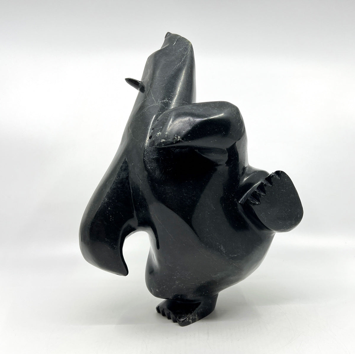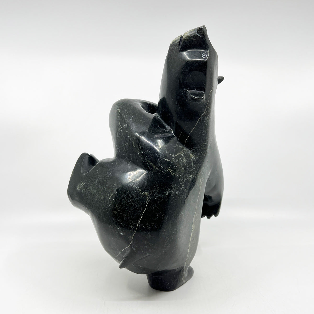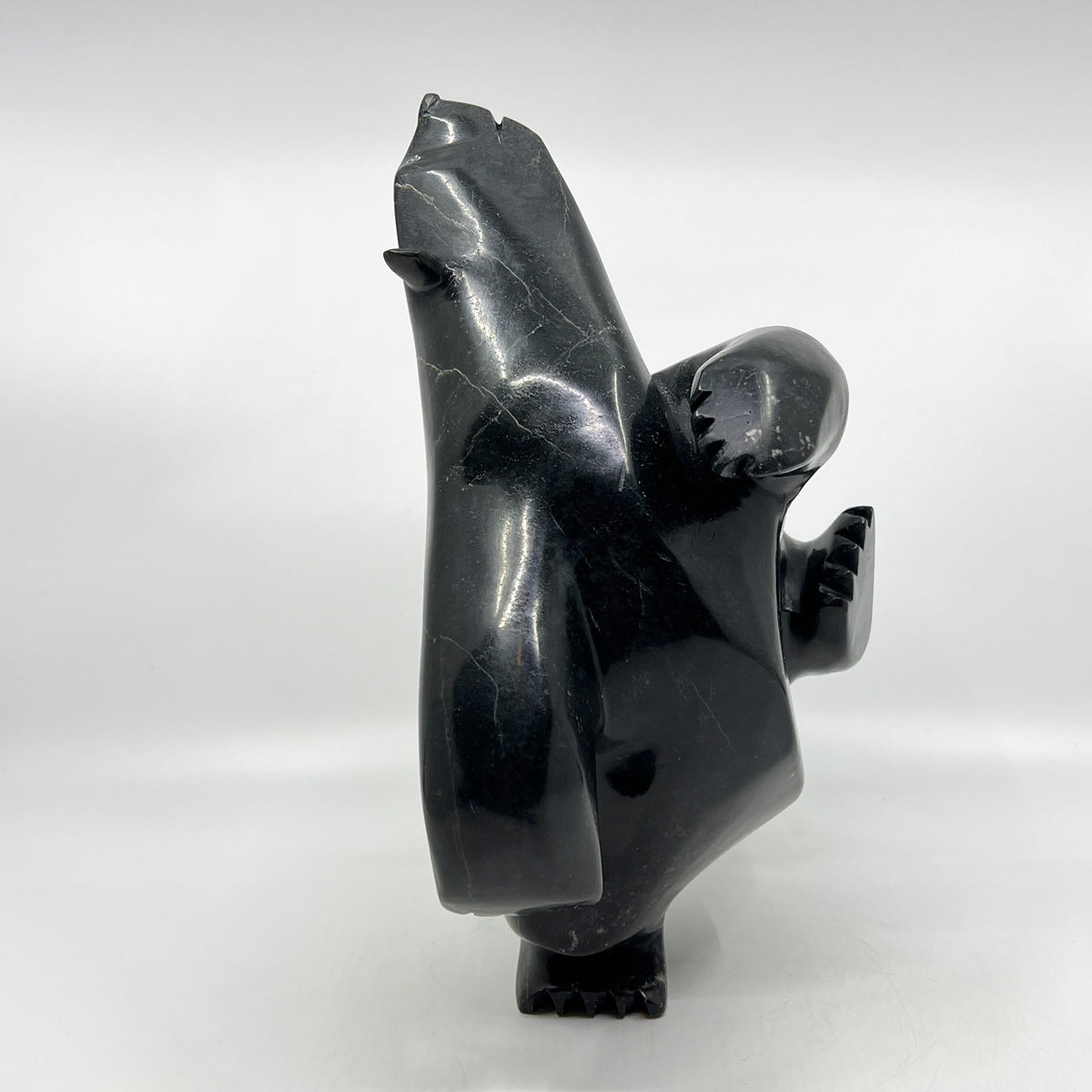 Some Inuit believe that how we live our lives affects what we become in the afterlife. Apparently, the best reward for a life-well-lived is to return in the form of the polar bear. This is because the ‘King of the Arctic’, as he is endearingly called, is strong enough to survive the long, cold winters. Instead of carving polar bears only in walking positions or other poses often seen in nature, Inuit carvers began to make bears in upright positions, often standing on one hind leg. This pose represents the polar bear in a happy state of dancing and celebration. Some carvers claim that dancing bears represent a form of shamanism and transformation between a human and a bear.