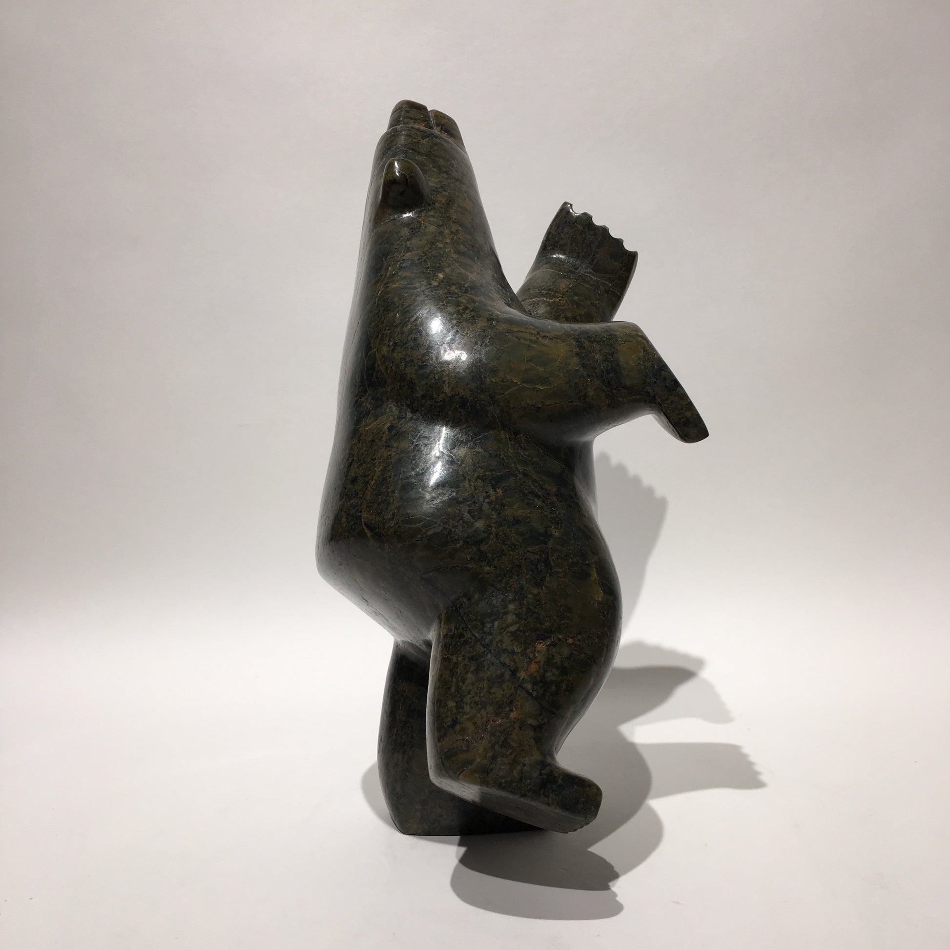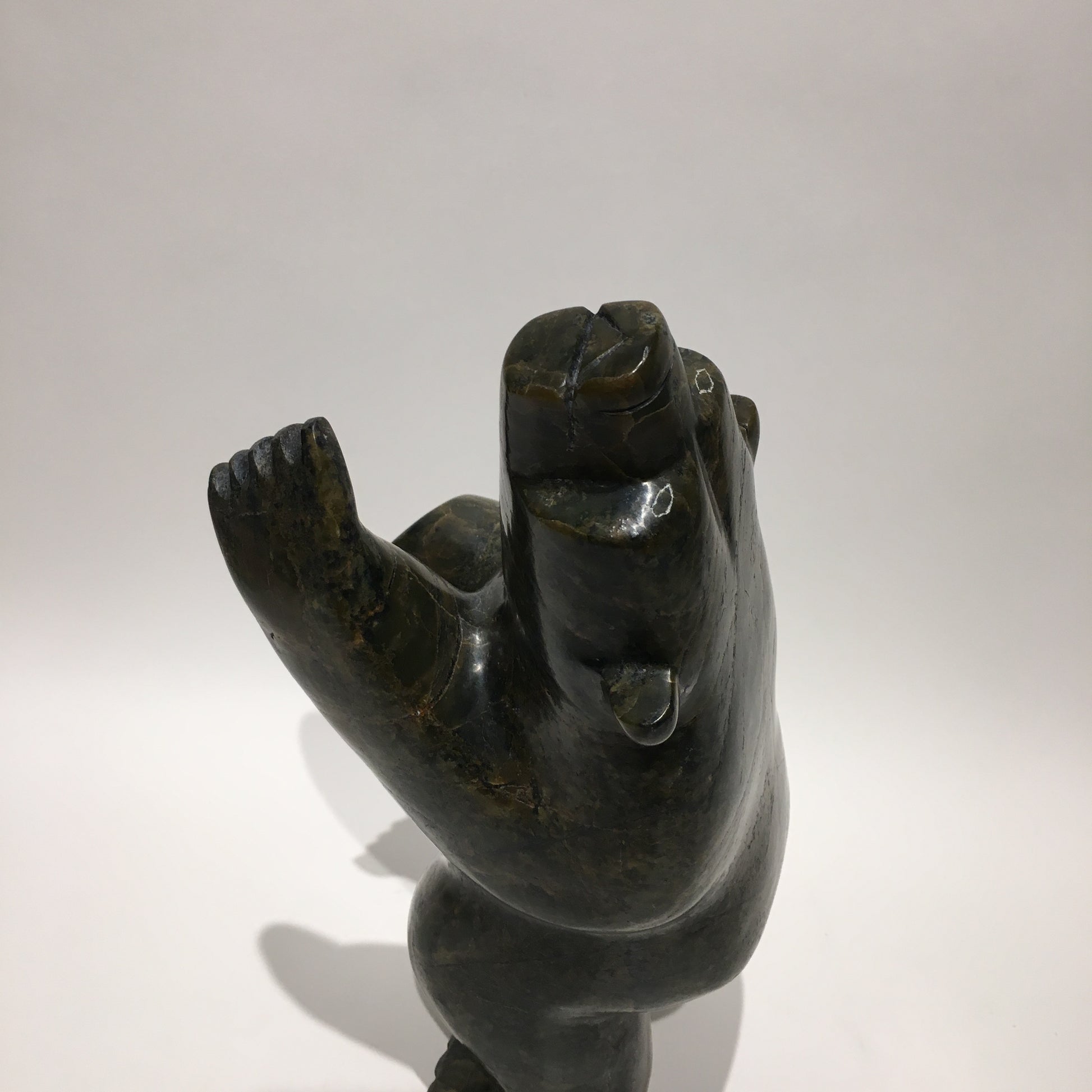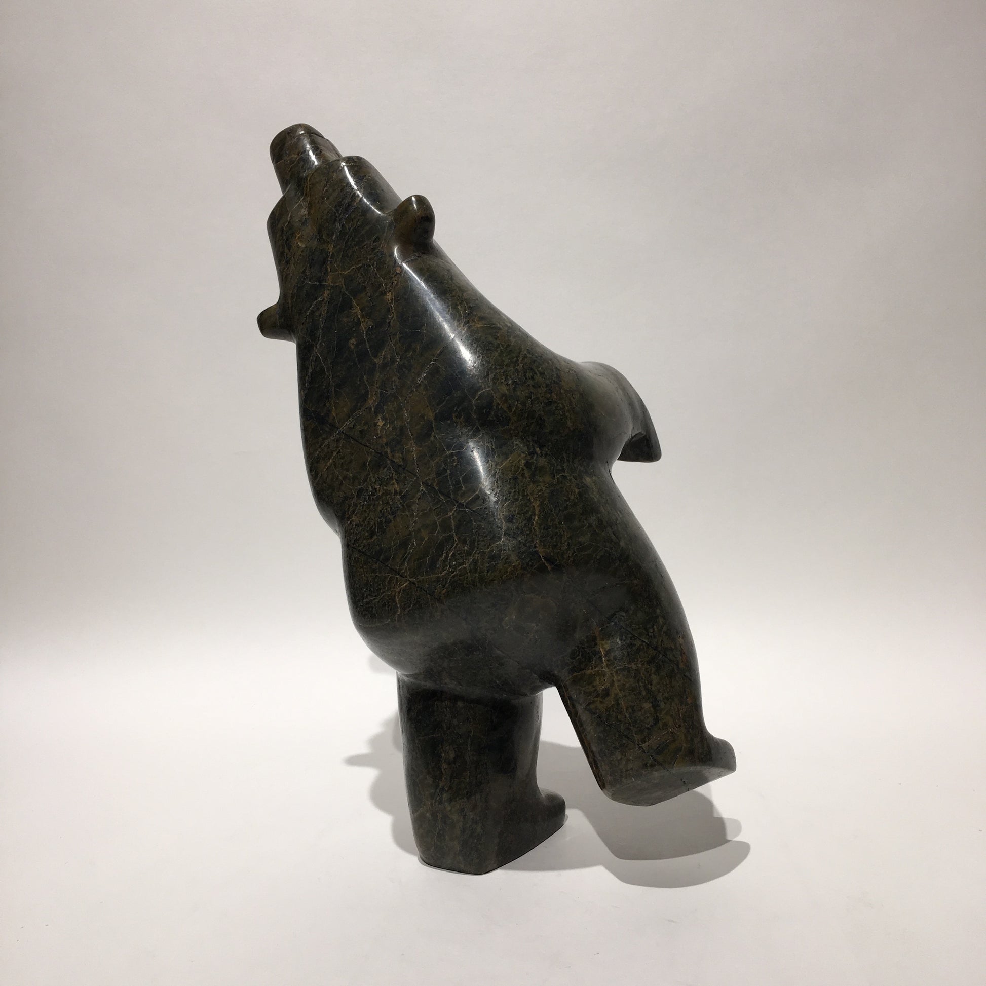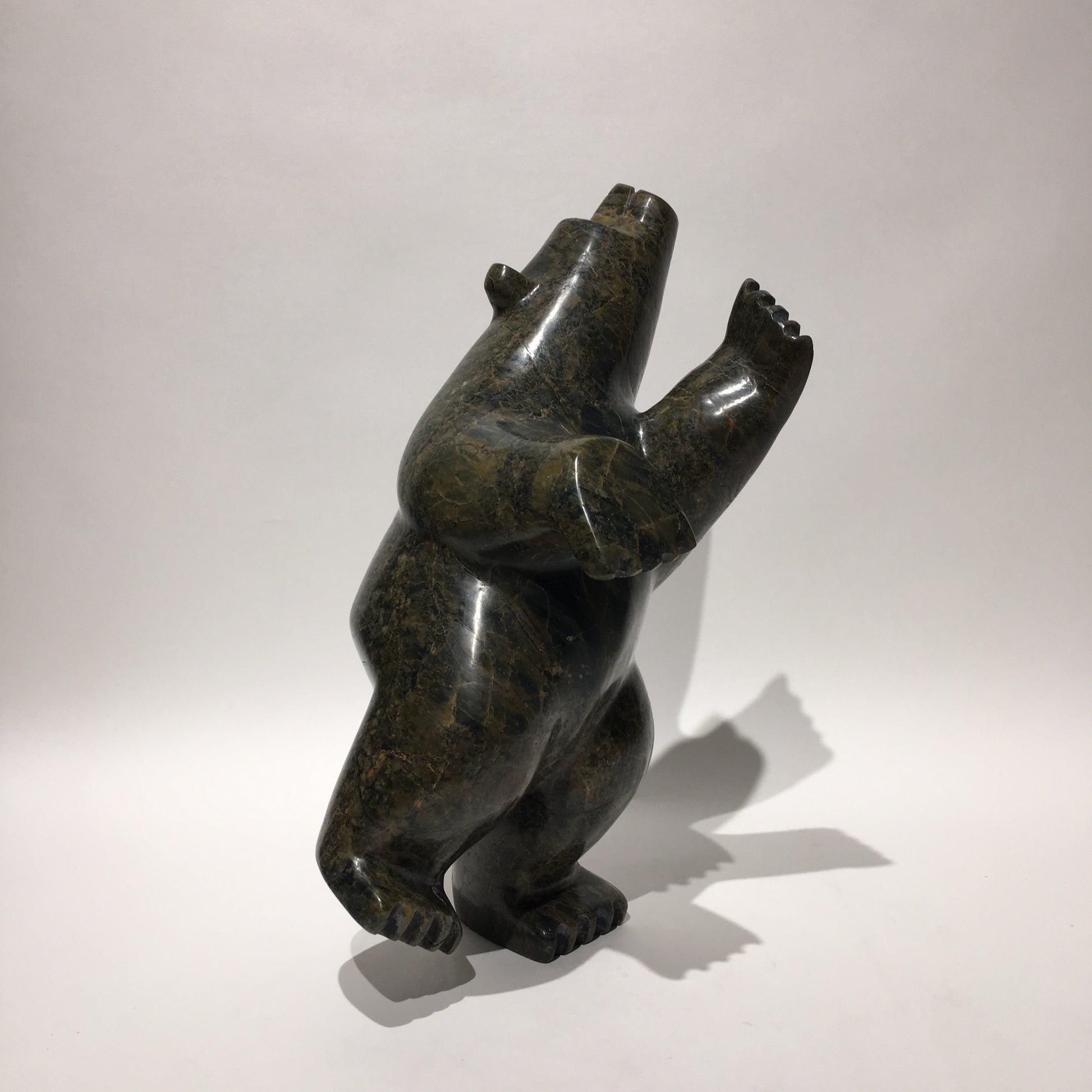 Some Inuit believe that how we live our lives affects what we become in the afterlife. Apparently, the best reward for a life-well-lived is to return in the form of the polar bear. This is because the ‘King of the Arctic’, as he is endearingly called, is strong enough to survive the long, cold winters. Instead of carving polar bears only in walking positions or other poses often seen in nature, Inuit carvers began to make bears in upright positions, often standing on one hind leg. This pose represents the polar bear in a happy state of dancing and celebration. Some carvers claim that dancing bears represent a form of shamanism and transformation between a human and a bear.