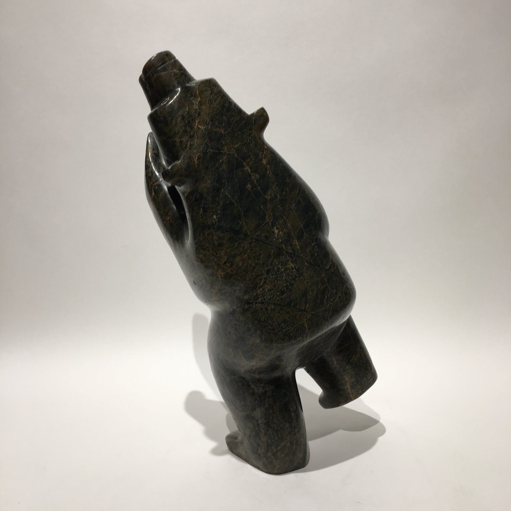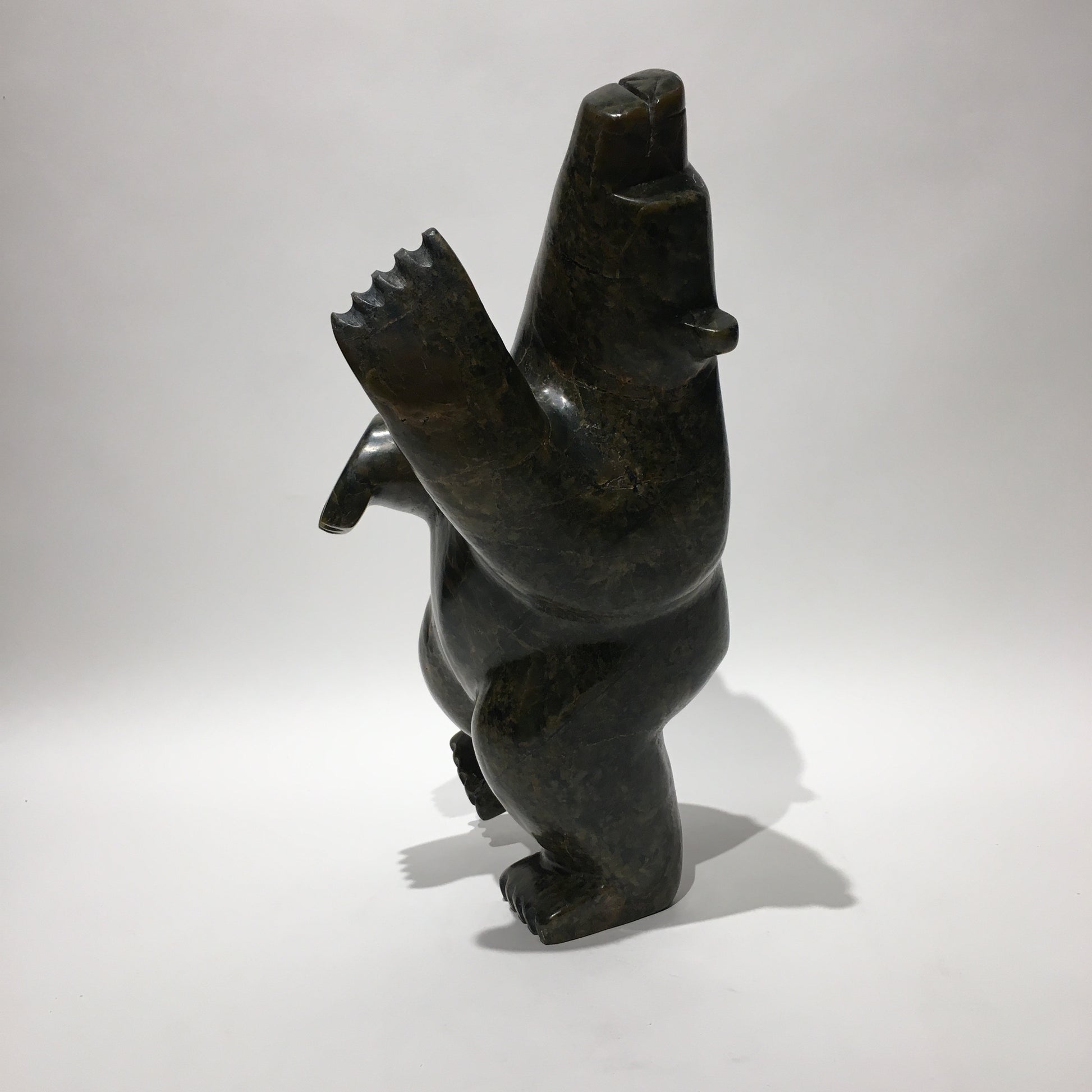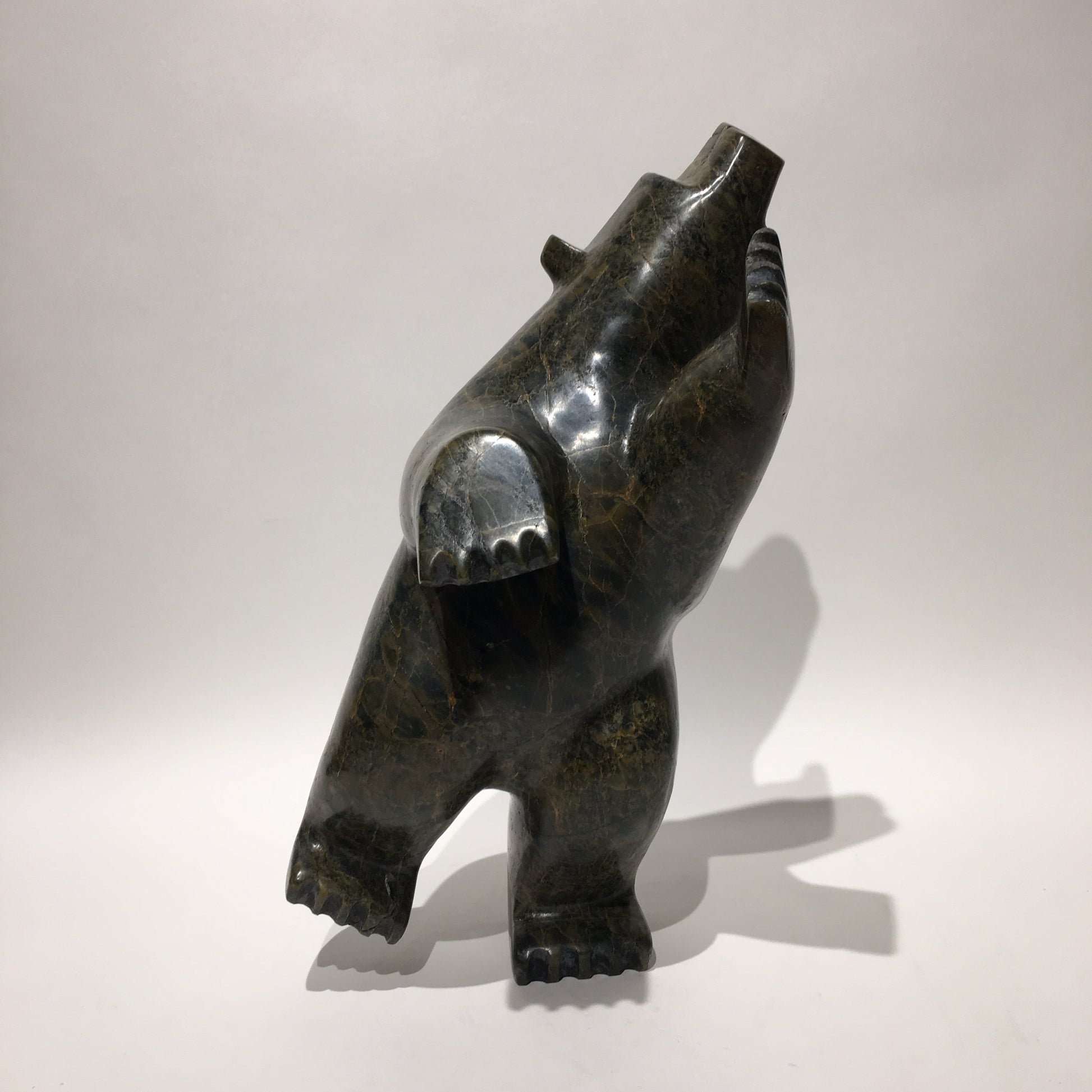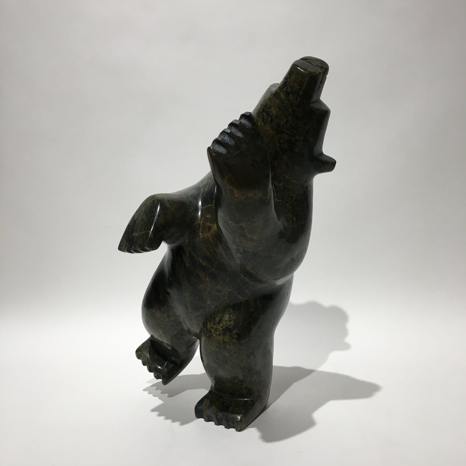 Some Inuit believe that how we live our lives affects what we become in the afterlife. Apparently, the best reward for a life-well-lived is to return in the form of the polar bear. This is because the ‘King of the Arctic’, as he is endearingly called, is strong enough to survive the long, cold winters. Instead of carving polar bears only in walking positions or other poses often seen in nature, Inuit carvers began to make bears in upright positions, often standing on one hind leg. This pose represents the polar bear in a happy state of dancing and celebration. Some carvers claim that dancing bears represent a form of shamanism and transformation between a human and a bear.