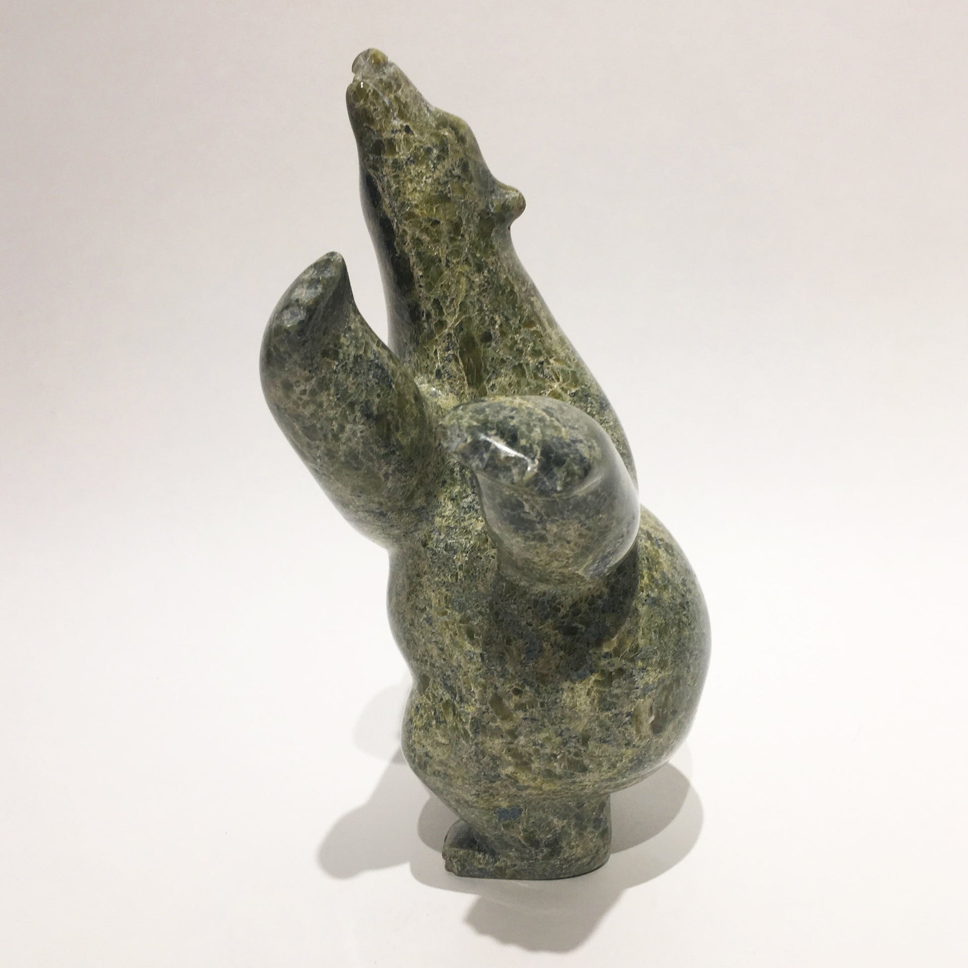 Some Inuit believe that how we live our lives affects what we become in the afterlife. Apparently, the best reward for a life-well-lived is to return in the form of the polar bear. This is because the ‘King of the Arctic’, as he is endearingly called, is strong enough to survive the long, cold winters. Instead of carving polar bears only in walking positions or other poses often seen in nature, Inuit carvers began to make bears in upright positions, often standing on one hind leg. This pose represents the polar bear in a happy state of dancing and celebration. Some carvers claim that dancing bears represent a form of shamanism and transformation between a human and a bear.