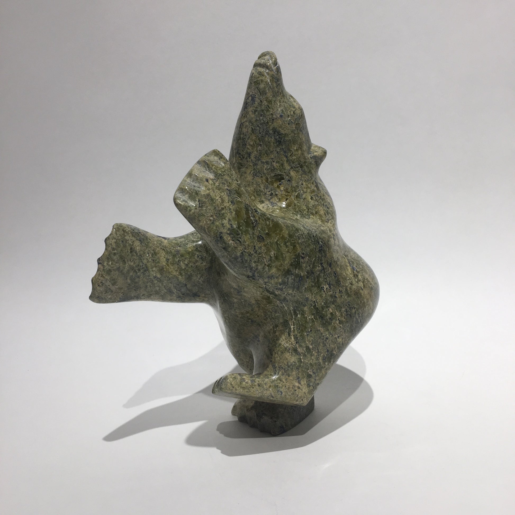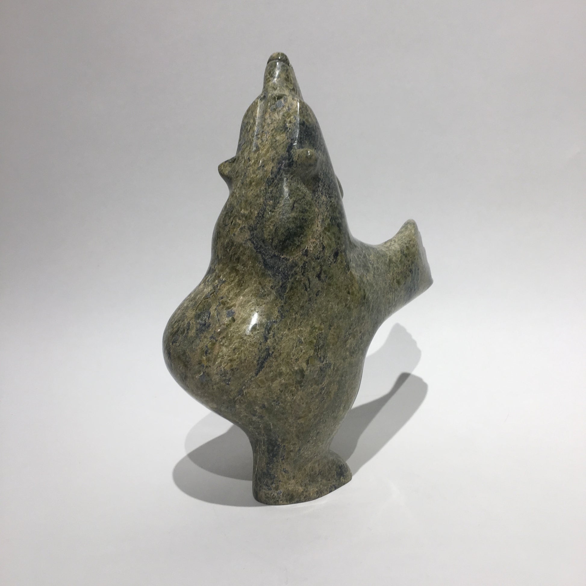 Joanie Ragee is a highly acclaimed artist with international recognition, particularly for his dancing bear sculptures. Born in Iqaluit (formerly known as Frobisher Bay), he now lives in Cape Dorset, both of which are renowned artistic centers in Nunavut.