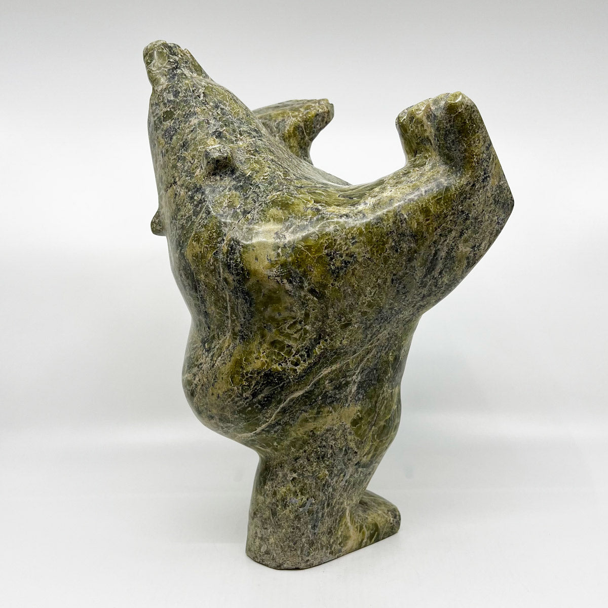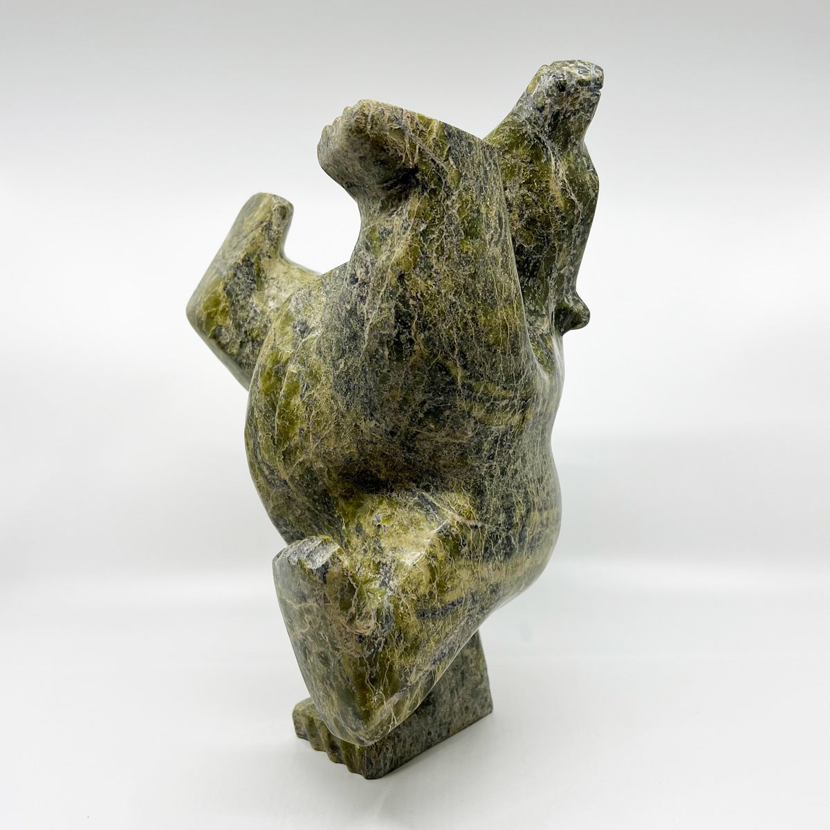 Joanie Ragee is a highly acclaimed artist with international recognition, particularly for his dancing bear sculptures. Born in Iqaluit (formerly known as Frobisher Bay), he now lives in Cape Dorset, both of which are renowned artistic centers in Nunavut.