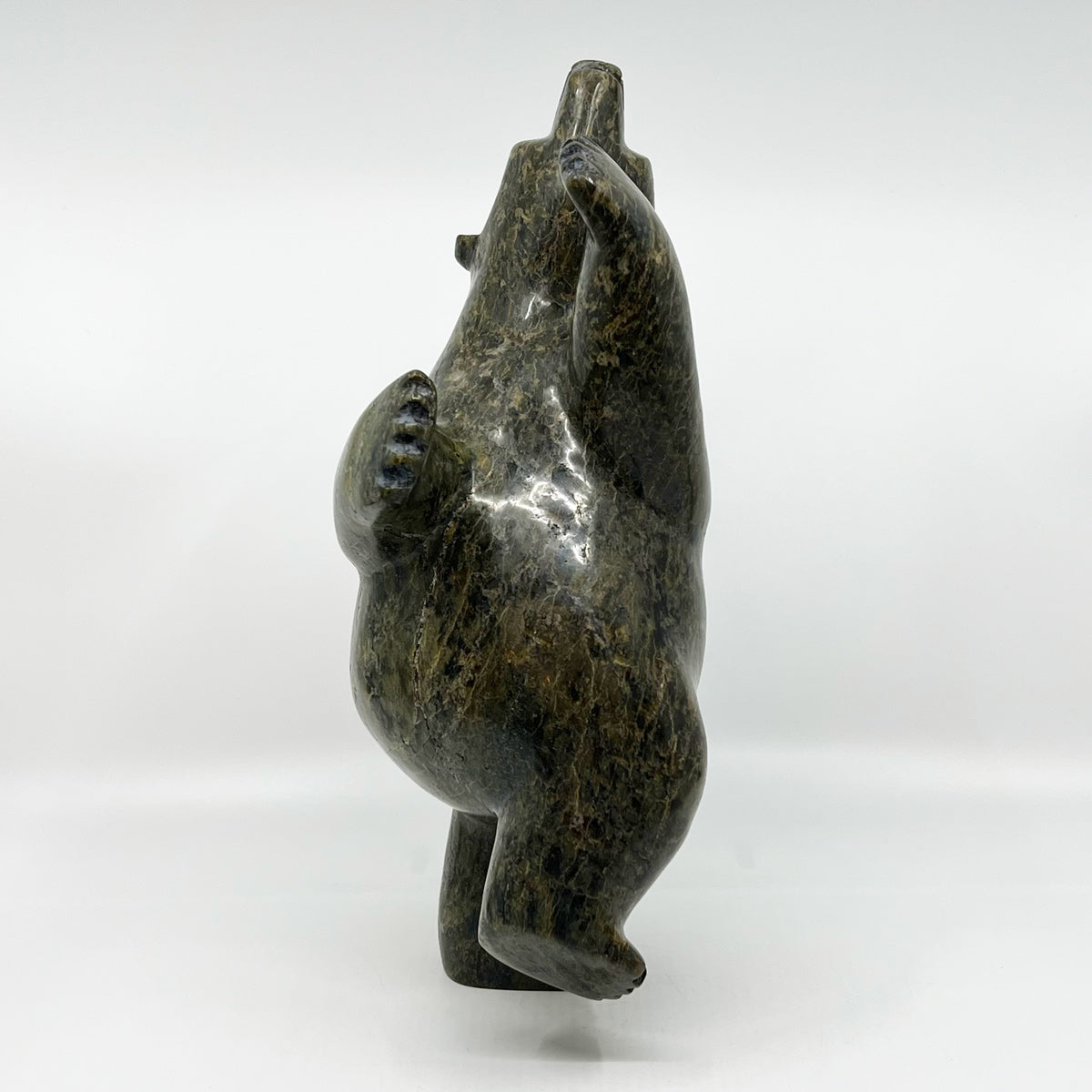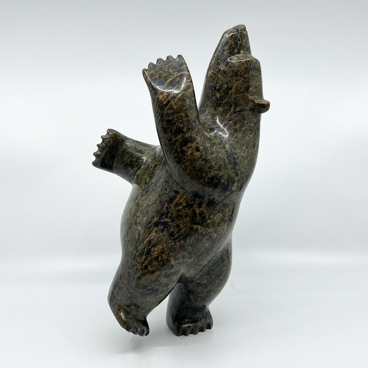 Some Inuit believe that how we live our lives affects what we become in the afterlife. Apparently, the best reward for a life-well-lived is to return in the form of the polar bear. This is because the ‘King of the Arctic’, as he is endearingly called, is strong enough to survive the long, cold winters. Instead of carving polar bears only in walking positions or other poses often seen in nature, Inuit carvers began to make bears in upright positions, often standing on one hind leg. This pose represents the polar bear in a happy state of dancing and celebration. Some carvers claim that dancing bears represent a form of shamanism and transformation between a human and a bear.