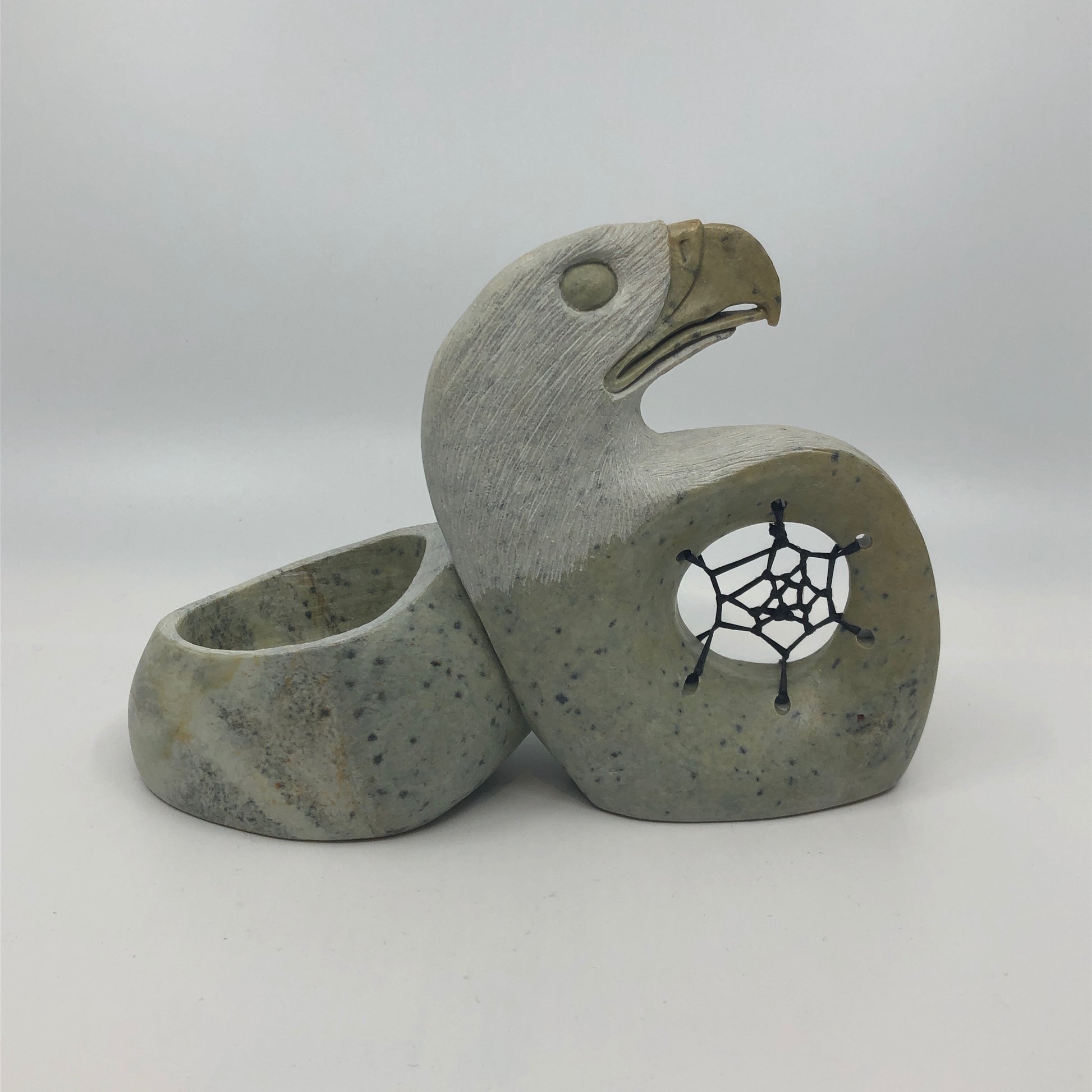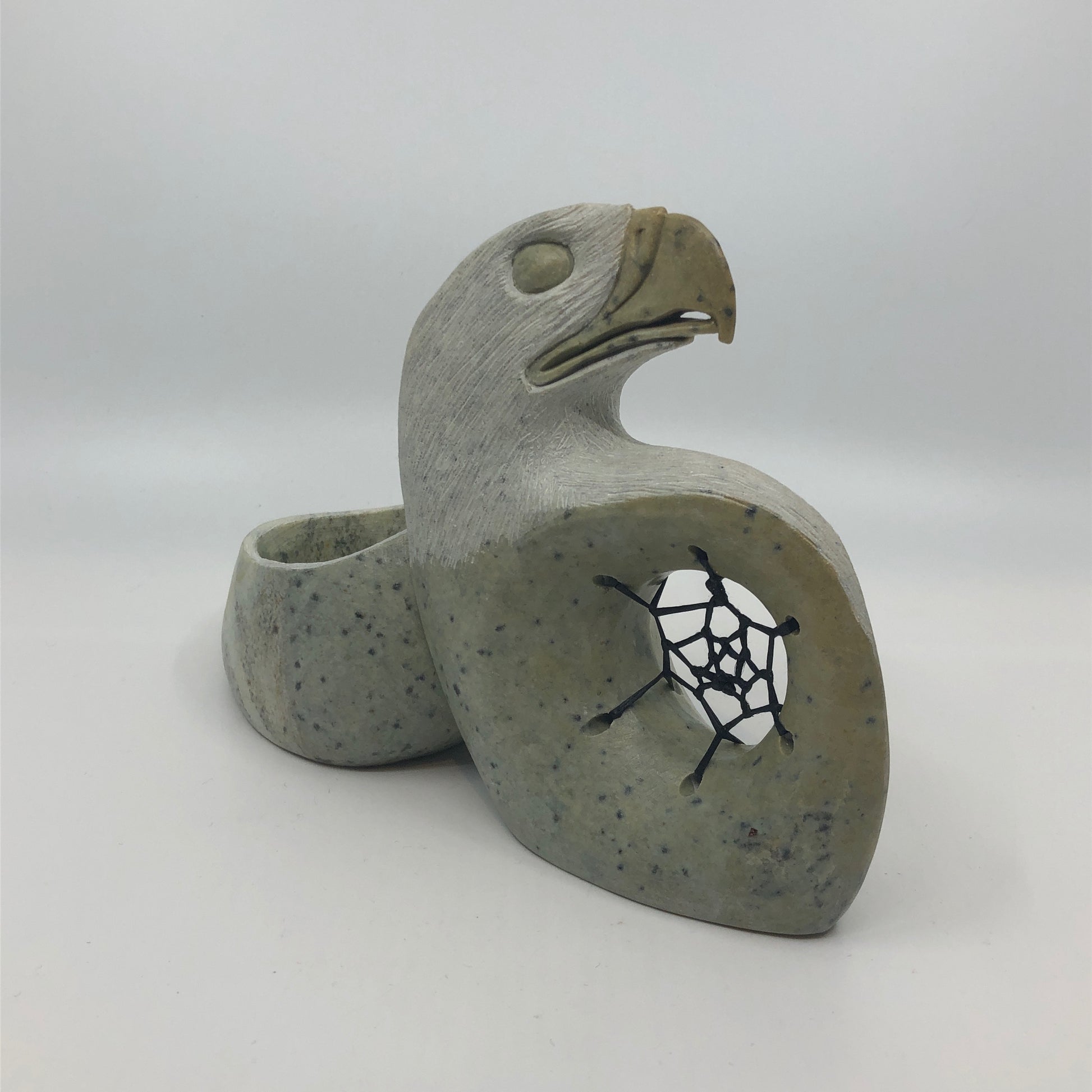 As a self-taught artist, Longboat’s medium of choice is primarily Brazilian soapstone. His sculptures are renowned for their intricate detail and the way they embody the spirit of his people. Longboat’s works typically focus on symbols and figures central to his culture, such as the eagle, turtle, and wolf, reflecting his deep connection to his ancestry and the natural world.