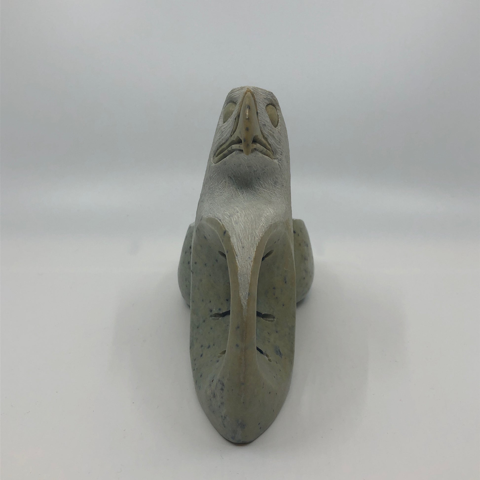 Todd Longboat, born in 1978 on the Six Nations Reserve in Ontario, Canada, is a highly regarded Indigenous artist known for his soapstone carvings. A member of the Wolf Clan of the Onondaga Nation, Longboat began his artistic journey at the age of 11, learning by observing his parents and older brother, both of whom were carvers. His work is deeply influenced by his cultural heritage, often depicting animals like wolves and eagles, which hold significant meaning within the clan systems of the Six Nations. His grandfather, Chief Jacob Thomas, was also a notable carver, further enriching Todd’s artistic lineage.