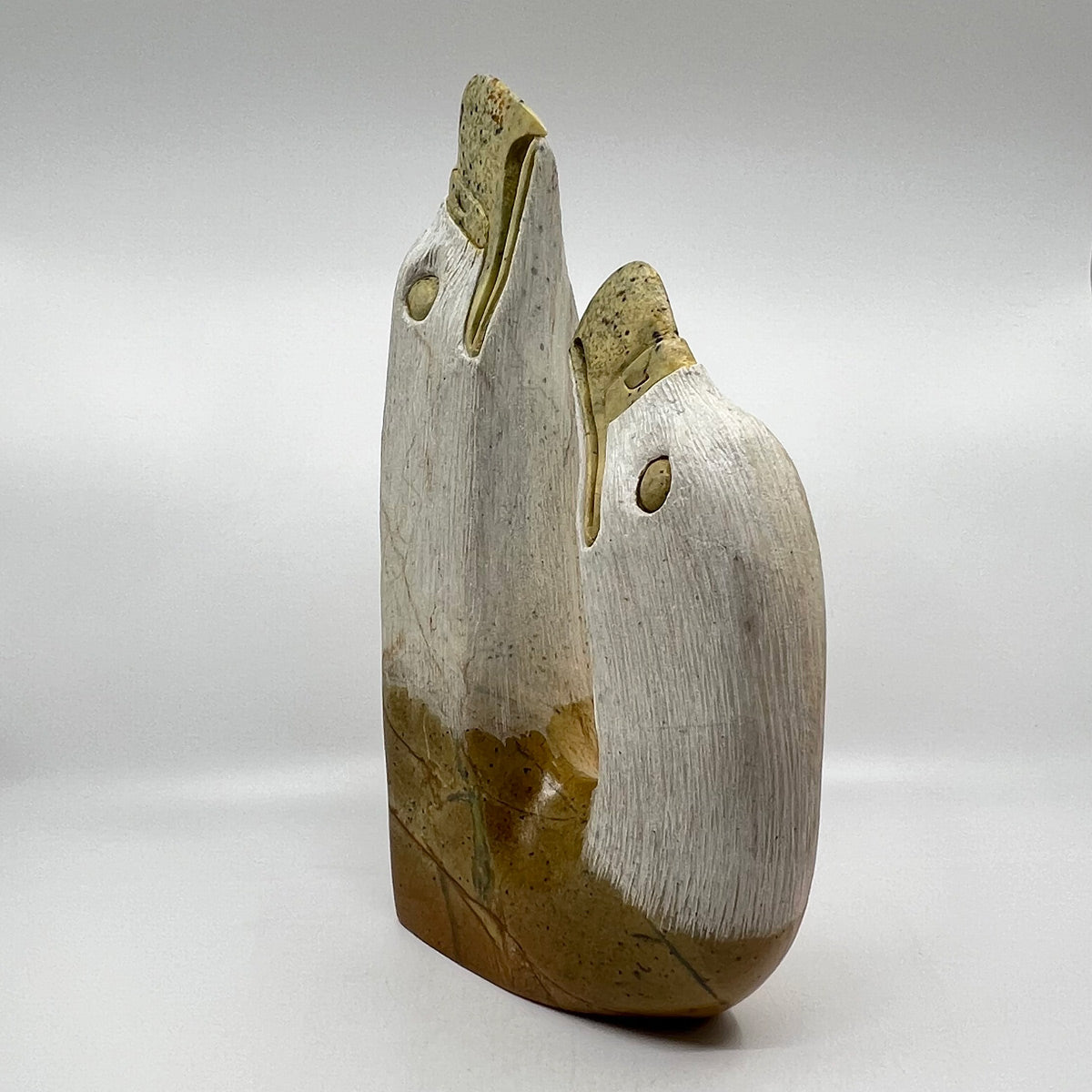 Todd Longboat, born in 1978 on the Six Nations Reserve in Ontario, Canada, is a highly regarded Indigenous artist known for his soapstone carvings. A member of the Wolf Clan of the Onondaga Nation, Longboat began his artistic journey at the age of 11, learning by observing his parents and older brother, both of whom were carvers. His work is deeply influenced by his cultural heritage, often depicting animals like wolves and eagles, which hold significant meaning within the clan systems of the Six Nations. His grandfather, Chief Jacob Thomas, was also a notable carver, further enriching Todd’s artistic lineage.