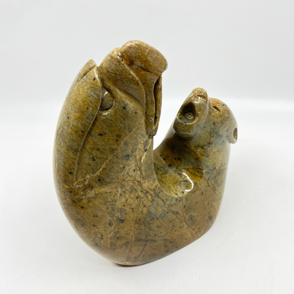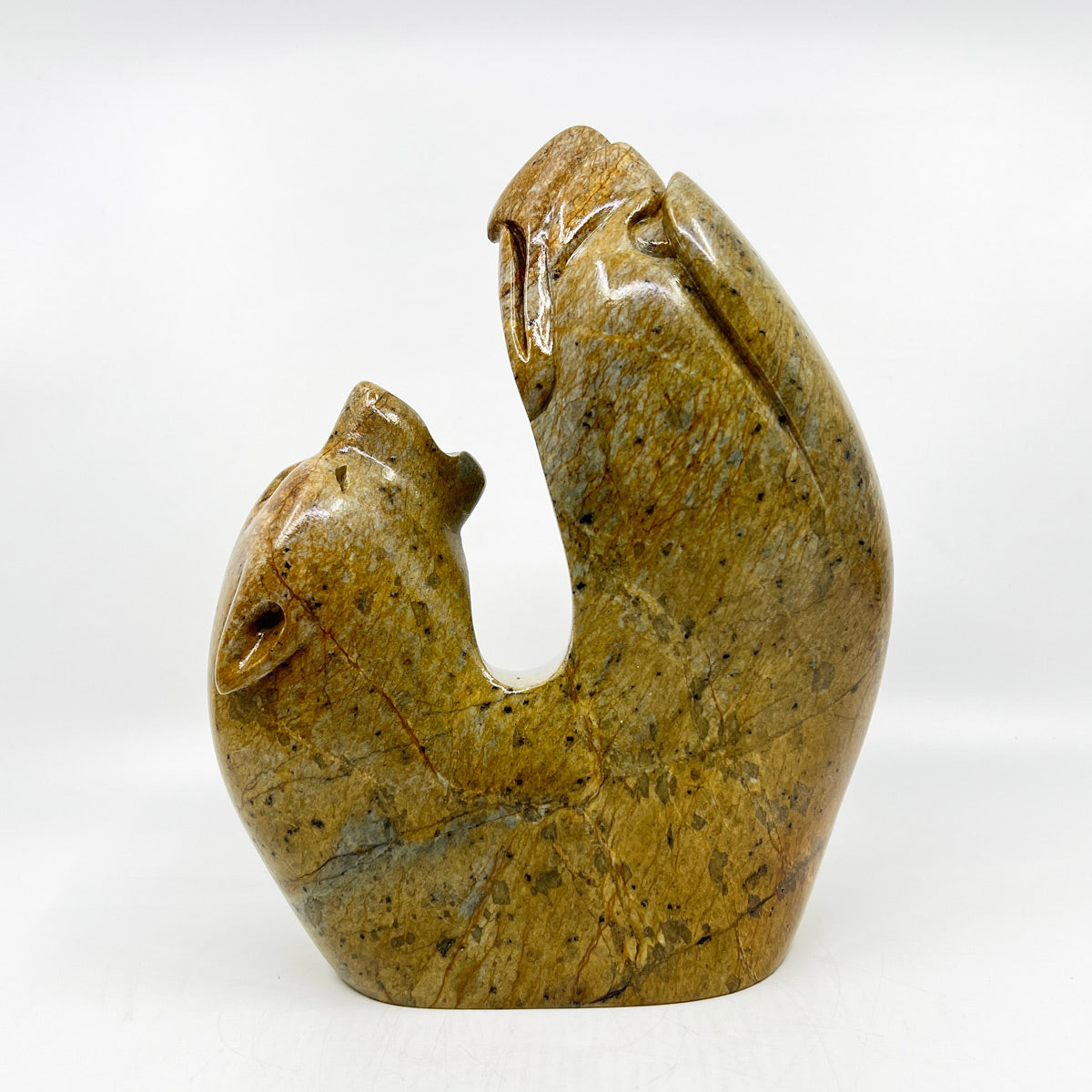 This contemporary sculpture celebrates the Eagle and Wolf Pair and his protective spiritual power.