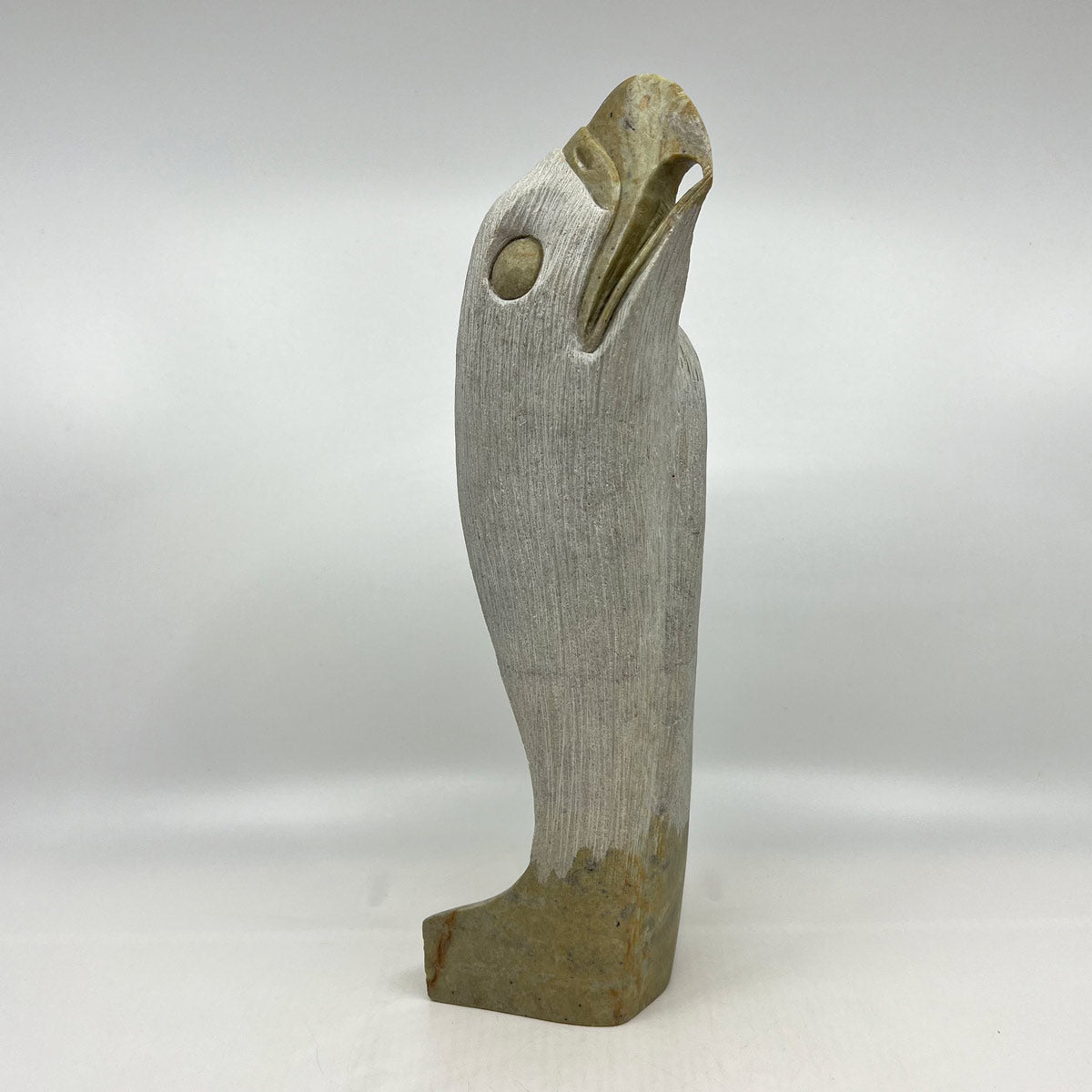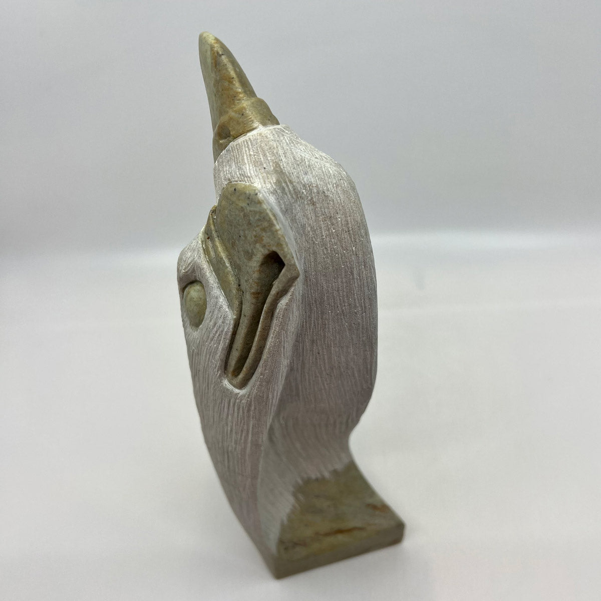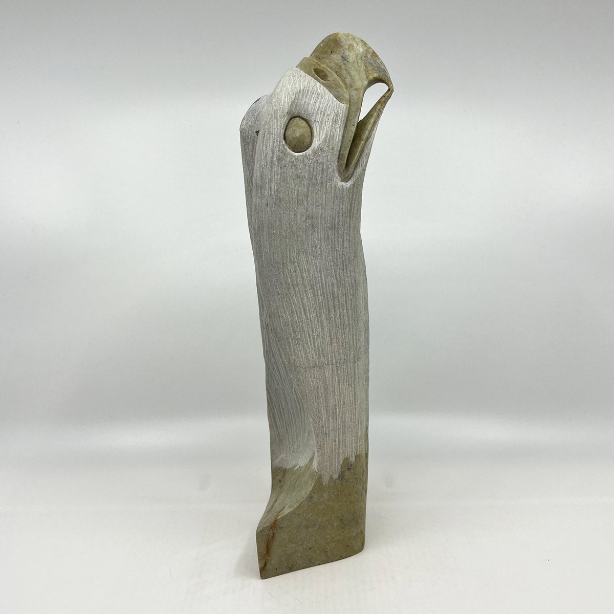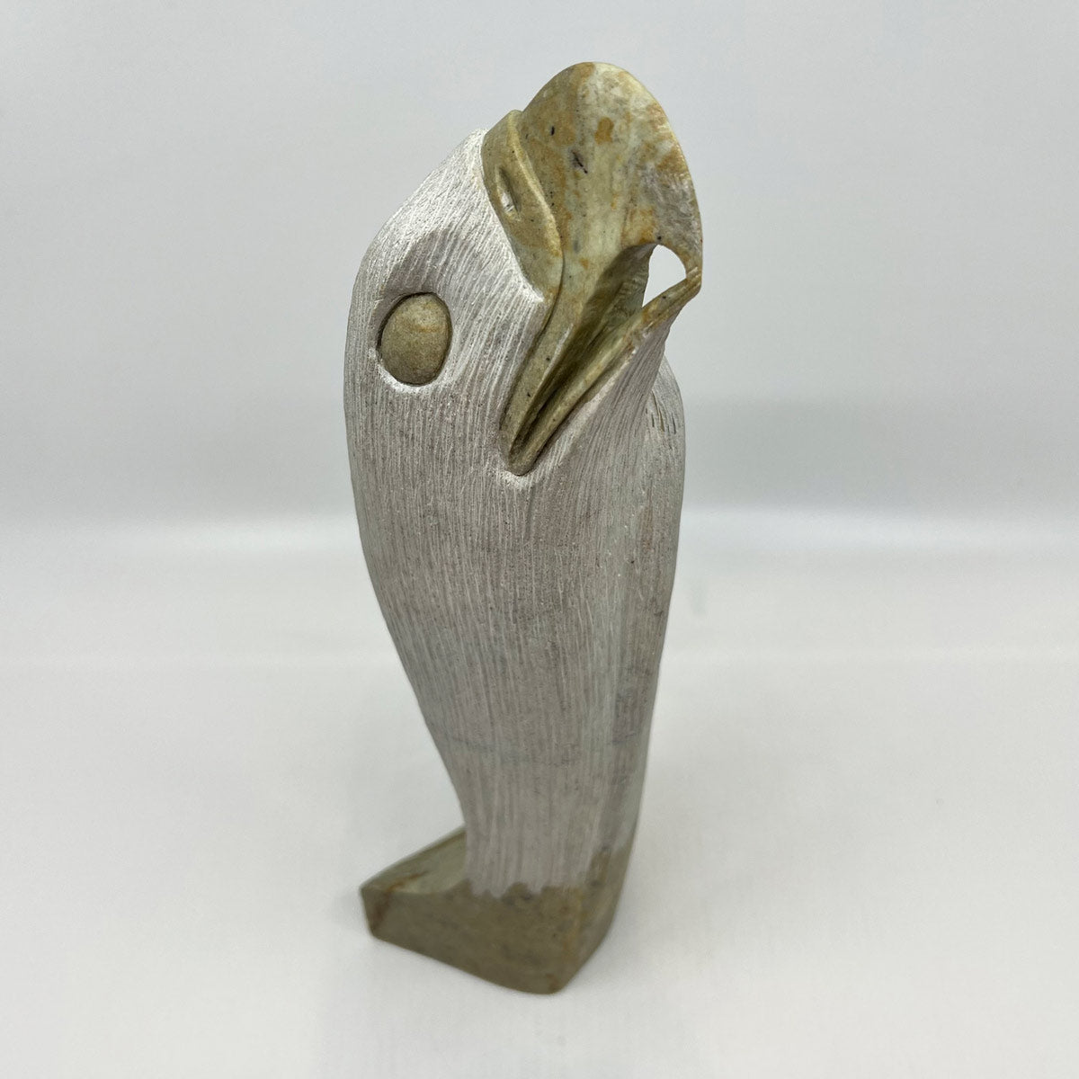 Todd Longboat, born in 1978 on the Six Nations Reserve in Ontario, Canada, is a highly regarded Indigenous artist known for his soapstone carvings. A member of the Wolf Clan of the Onondaga Nation, Longboat began his artistic journey at the age of 11, learning by observing his parents and older brother, both of whom were carvers. His work is deeply influenced by his cultural heritage, often depicting animals like wolves and eagles, which hold significant meaning within the clan systems of the Six Nations. His grandfather, Chief Jacob Thomas, was also a notable carver, further enriching Todd’s artistic lineage.