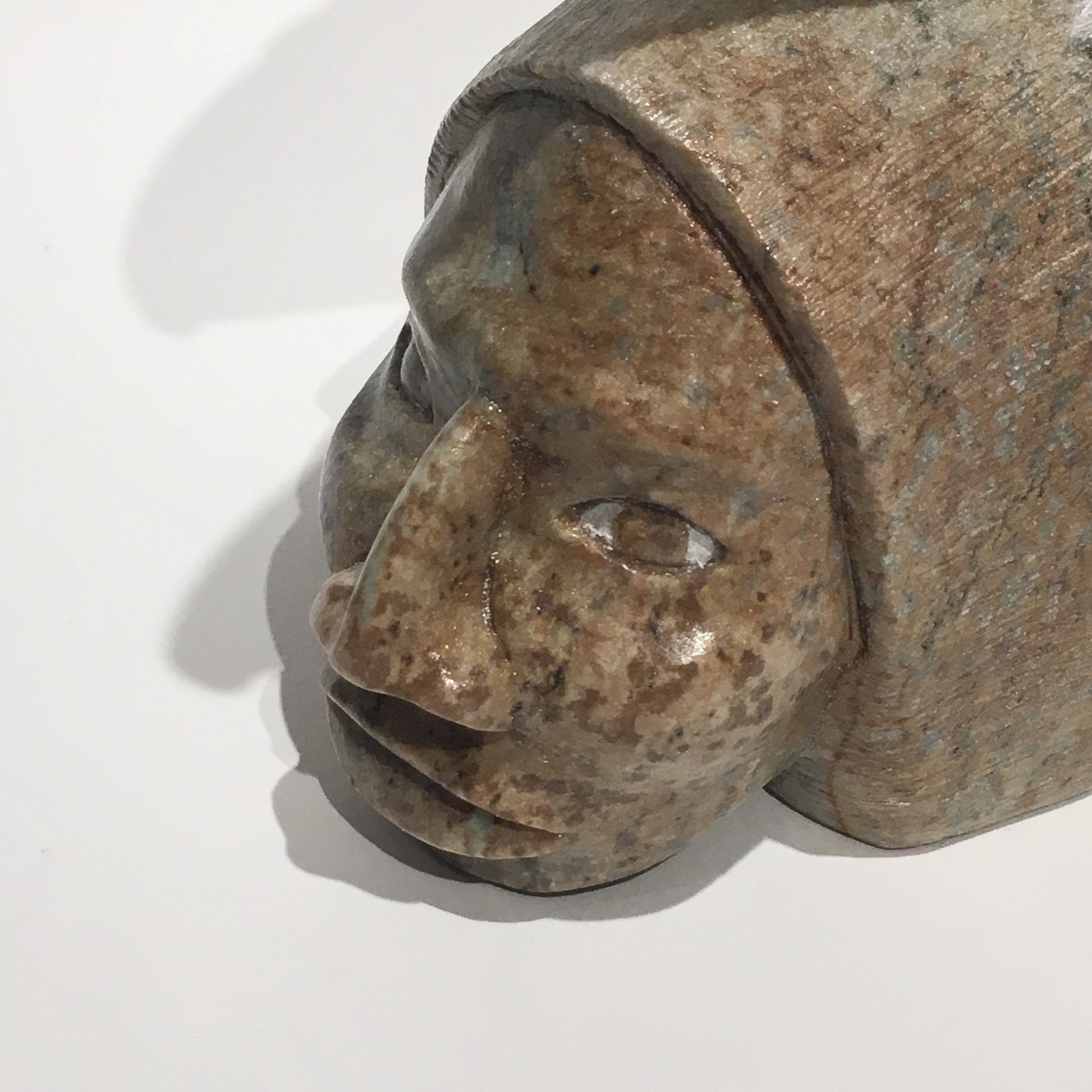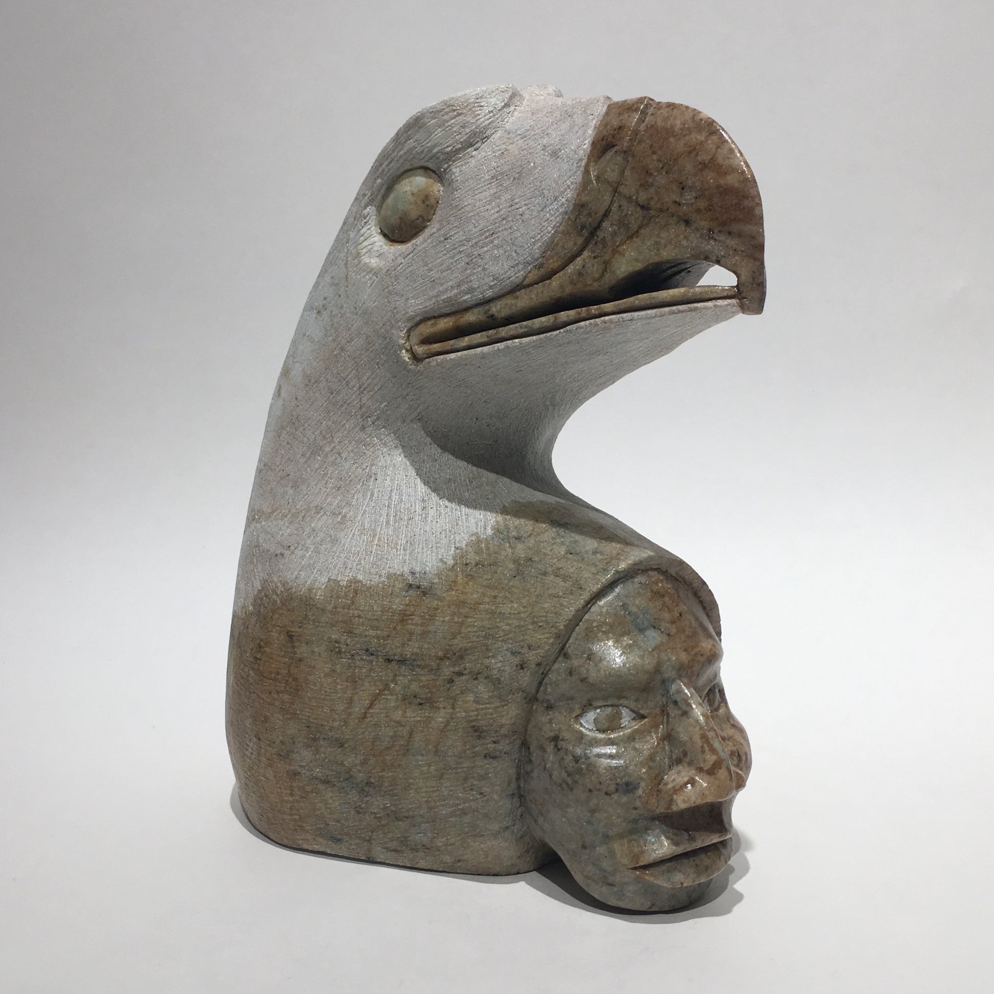 Todd Longboat, born in 1978 on the Six Nations Reserve in Ontario, Canada, is a highly regarded Indigenous artist known for his soapstone carvings. A member of the Wolf Clan of the Onondaga Nation, Longboat began his artistic journey at the age of 11, learning by observing his parents and older brother, both of whom were carvers. His work is deeply influenced by his cultural heritage, often depicting animals like wolves and eagles, which hold significant meaning within the clan systems of the Six Nations. His grandfather, Chief Jacob Thomas, was also a notable carver, further enriching Todd’s artistic lineage.