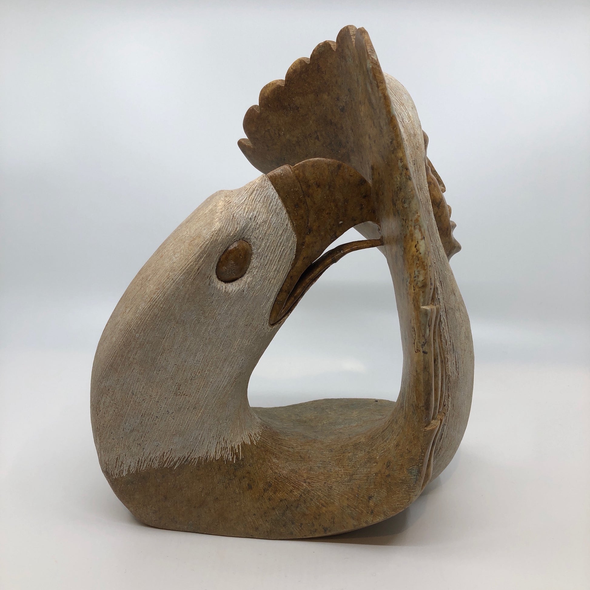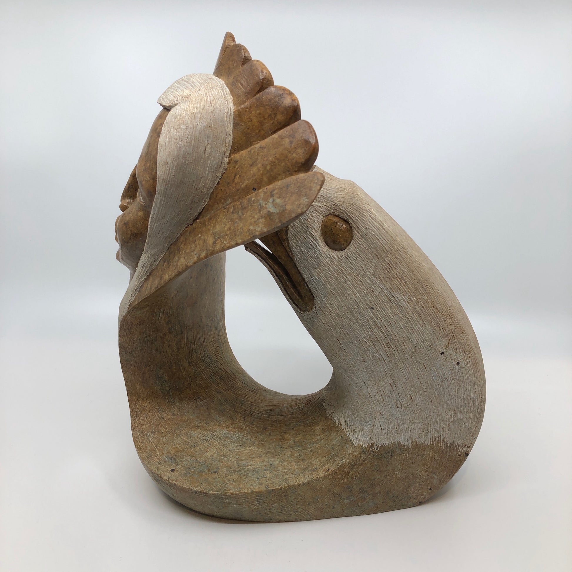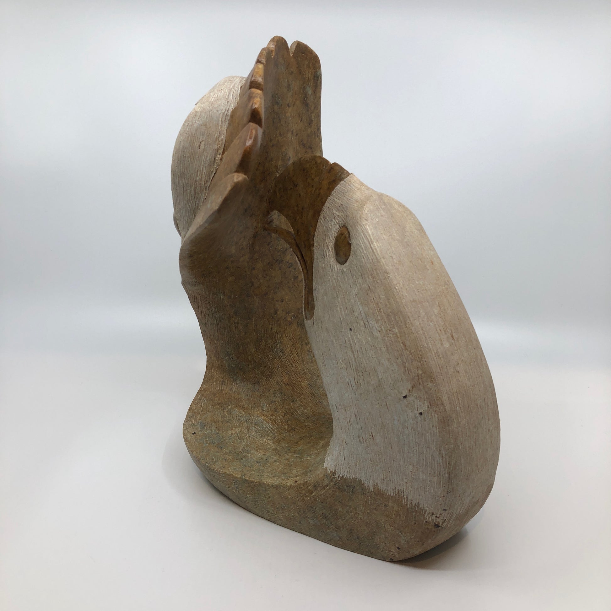 As a self-taught artist, Longboat’s medium of choice is primarily Brazilian soapstone. His sculptures are renowned for their intricate detail and the way they embody the spirit of his people. Longboat’s works typically focus on symbols and figures central to his culture, such as the eagle, turtle, and wolf, reflecting his deep connection to his ancestry and the natural world.