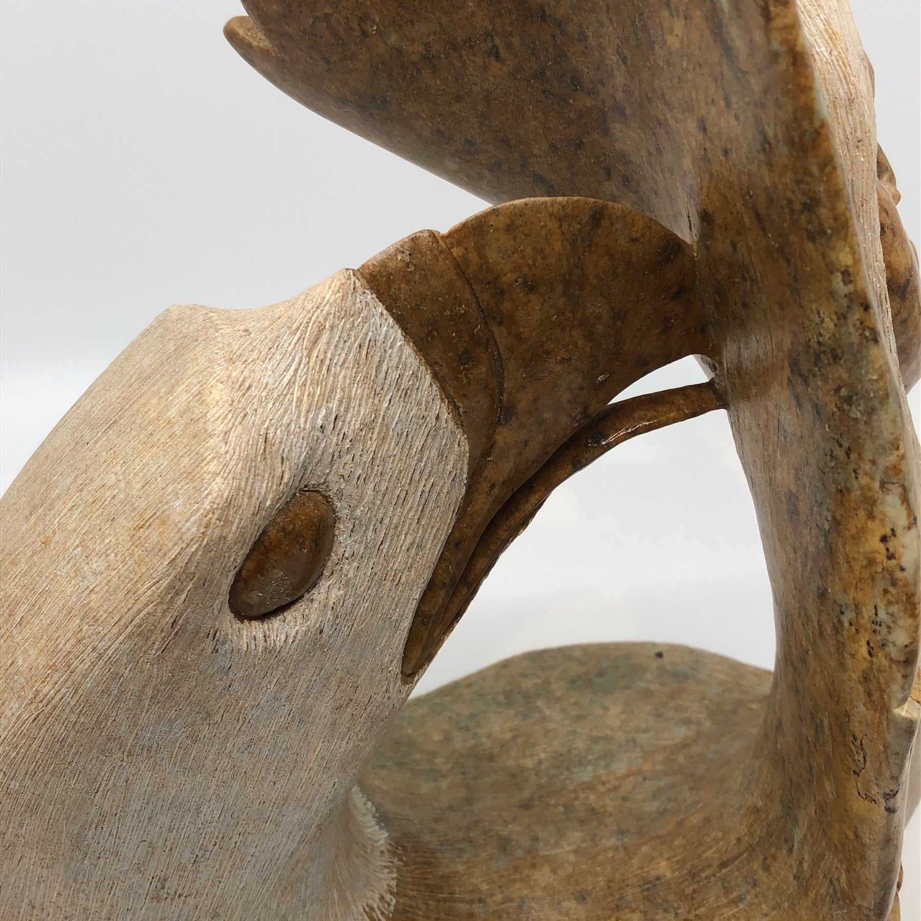 Todd Longboat, born in 1978 on the Six Nations Reserve in Ontario, Canada, is a highly regarded Indigenous artist known for his soapstone carvings. A member of the Wolf Clan of the Onondaga Nation, Longboat began his artistic journey at the age of 11, learning by observing his parents and older brother, both of whom were carvers. His work is deeply influenced by his cultural heritage, often depicting animals like wolves and eagles, which hold significant meaning within the clan systems of the Six Nations. His grandfather, Chief Jacob Thomas, was also a notable carver, further enriching Todd’s artistic lineage.
