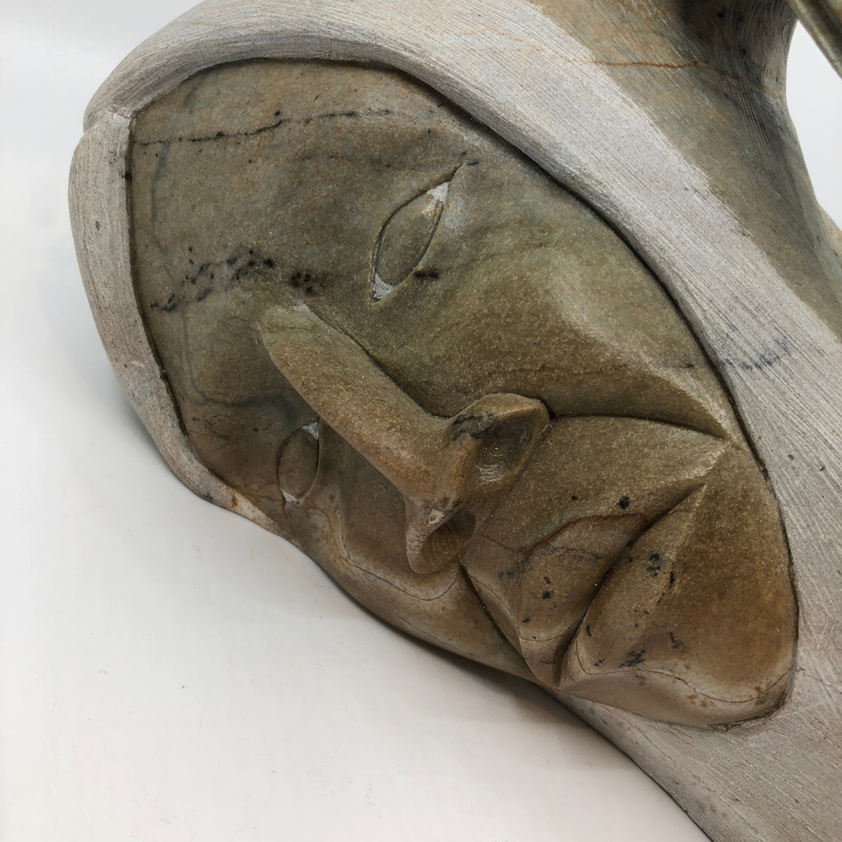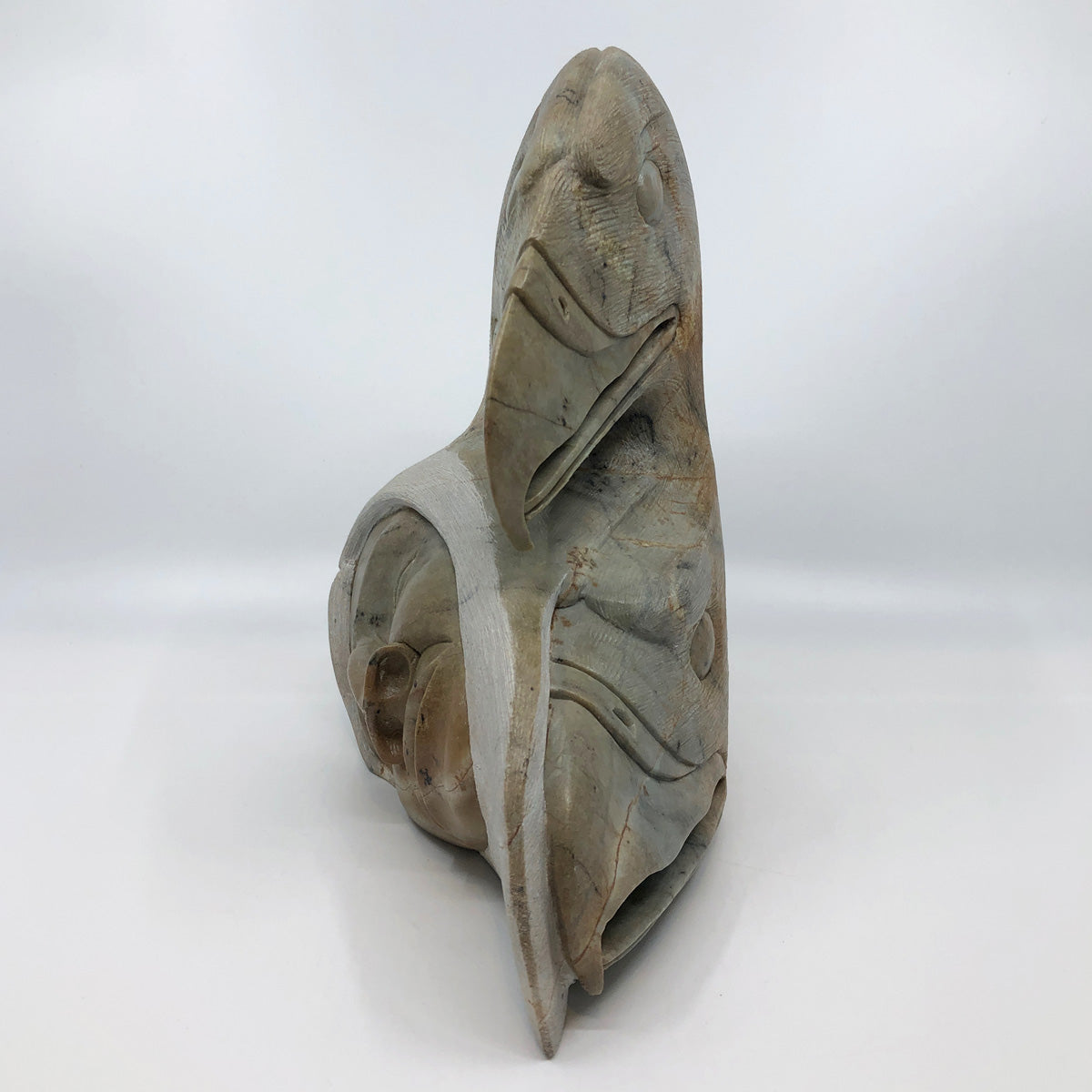 Todd Longboat, born in 1978 on the Six Nations Reserve in Ontario, Canada, is a highly regarded Indigenous artist known for his soapstone carvings. A member of the Wolf Clan of the Onondaga Nation, Longboat began his artistic journey at the age of 11, learning by observing his parents and older brother, both of whom were carvers. His work is deeply influenced by his cultural heritage, often depicting animals like wolves and eagles, which hold significant meaning within the clan systems of the Six Nations. His grandfather, Chief Jacob Thomas, was also a notable carver, further enriching Todd’s artistic lineage.
