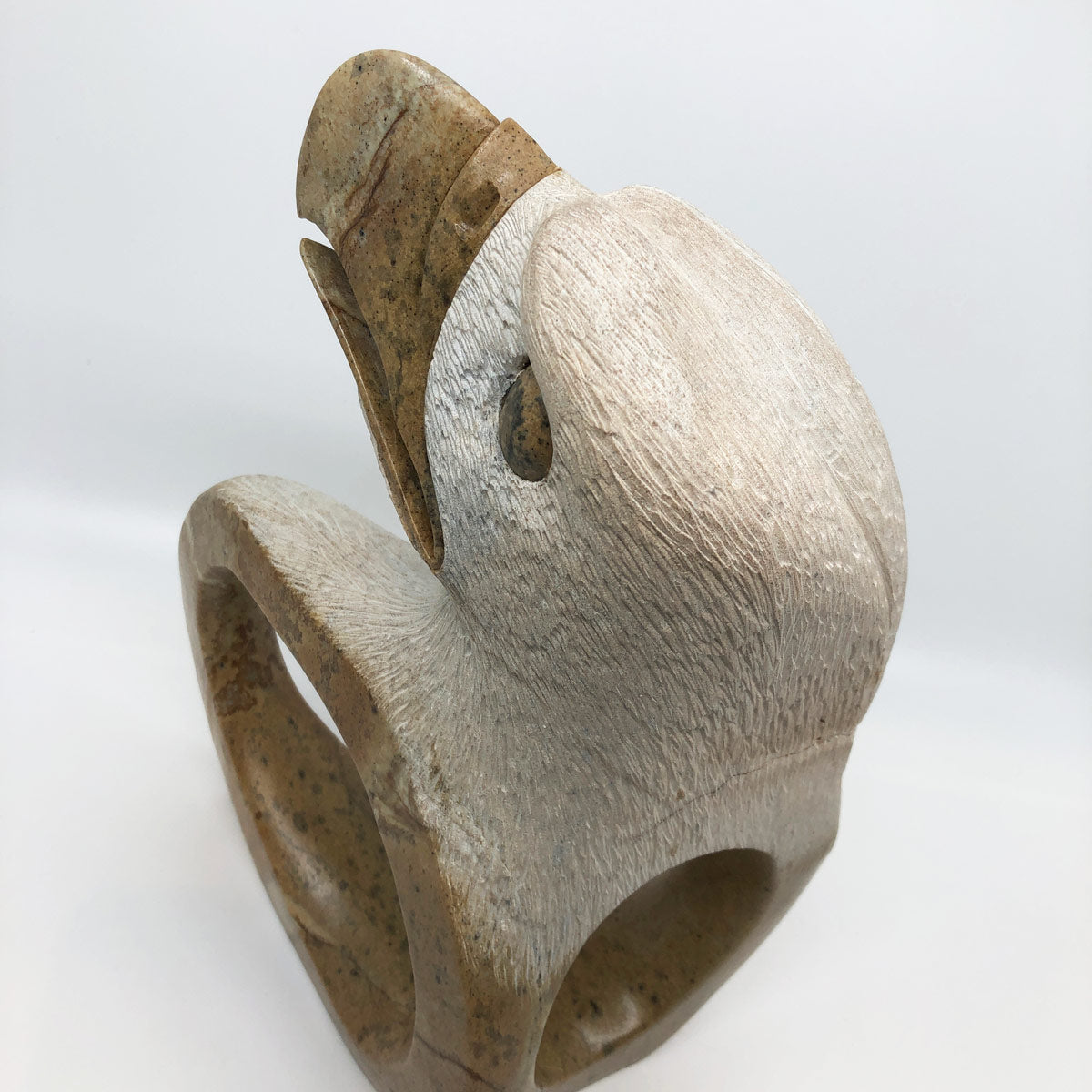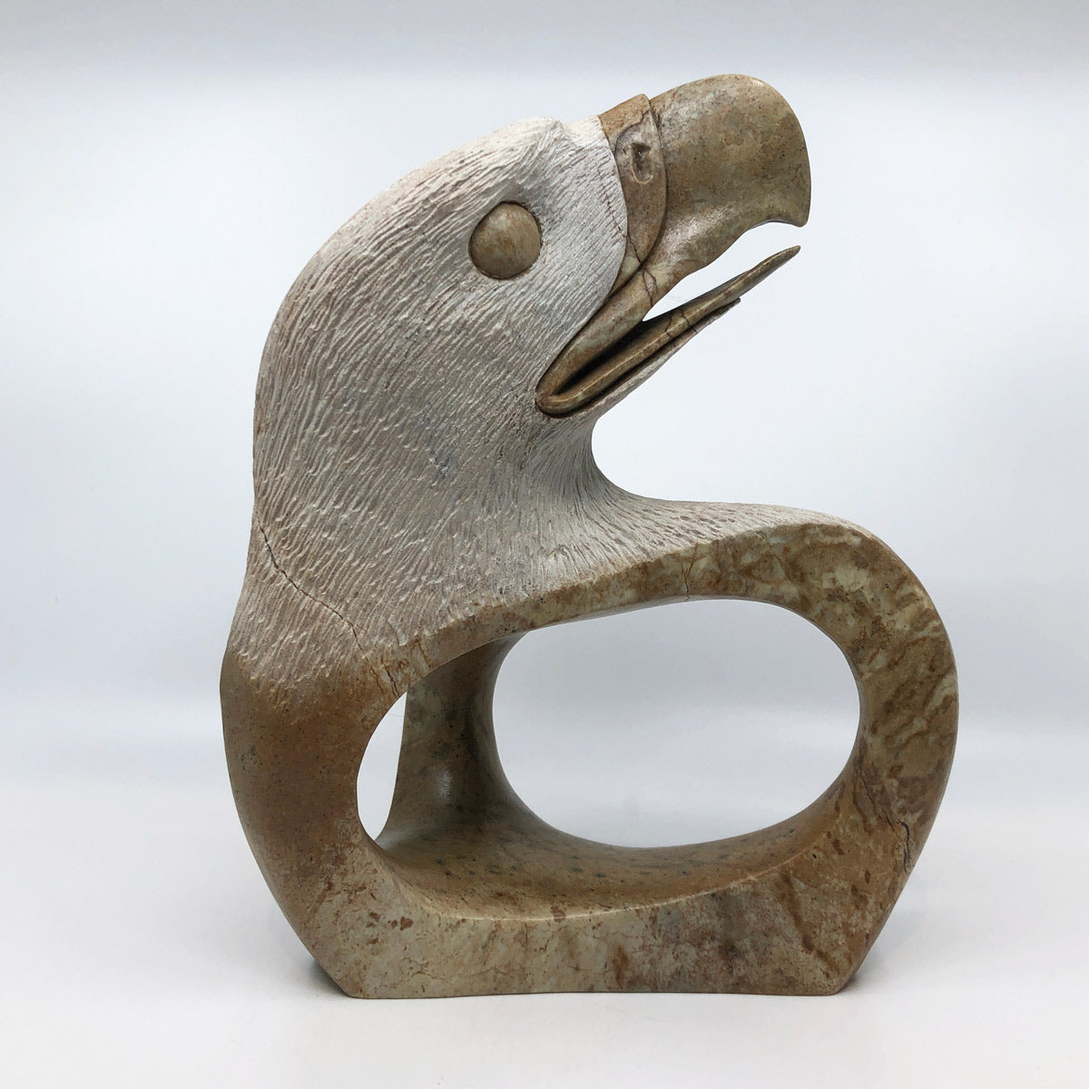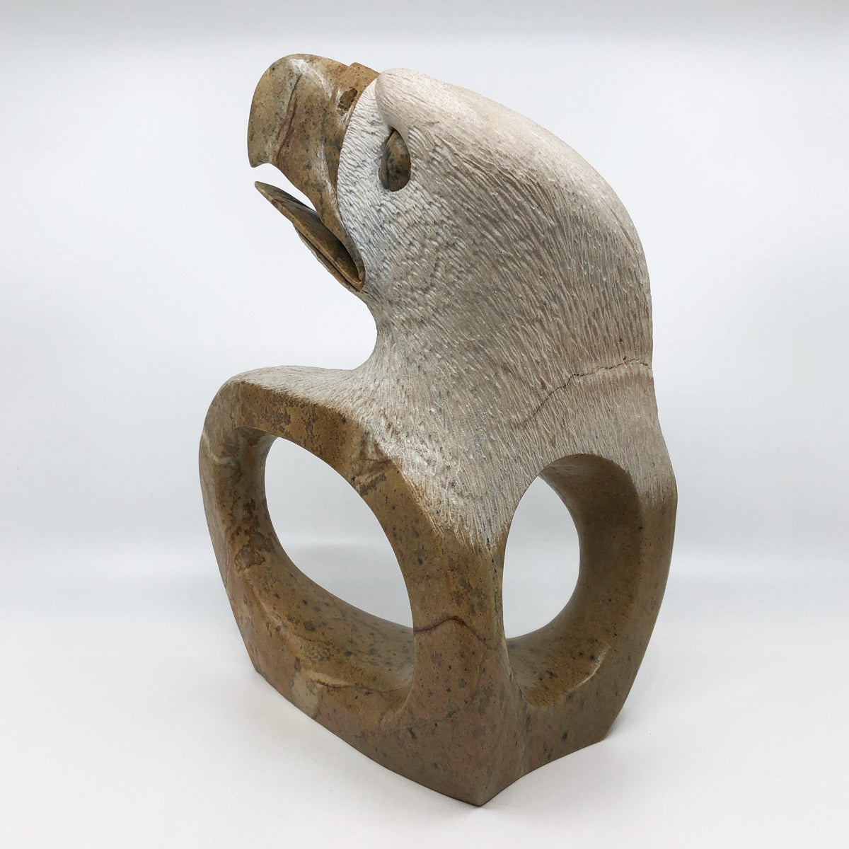 As a self-taught artist, Longboat’s medium of choice is primarily Brazilian soapstone. His sculptures are renowned for their intricate detail and the way they embody the spirit of his people. Longboat’s works typically focus on symbols and figures central to his culture, such as the eagle, turtle, and wolf, reflecting his deep connection to his ancestry and the natural world.