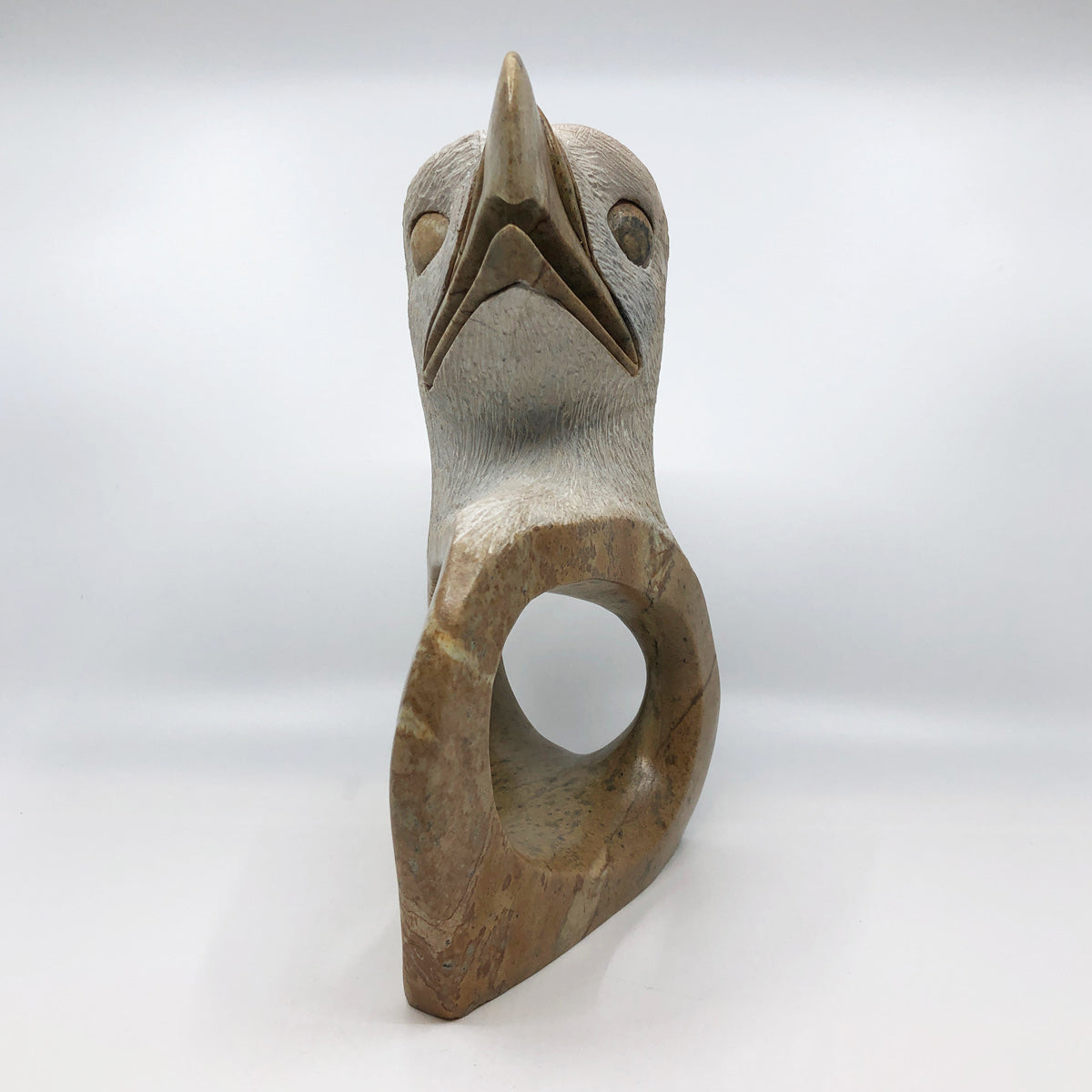 Todd Longboat, born in 1978 on the Six Nations Reserve in Ontario, Canada, is a highly regarded Indigenous artist known for his soapstone carvings. A member of the Wolf Clan of the Onondaga Nation, Longboat began his artistic journey at the age of 11, learning by observing his parents and older brother, both of whom were carvers. His work is deeply influenced by his cultural heritage, often depicting animals like wolves and eagles, which hold significant meaning within the clan systems of the Six Nations. His grandfather, Chief Jacob Thomas, was also a notable carver, further enriching Todd’s artistic lineage.