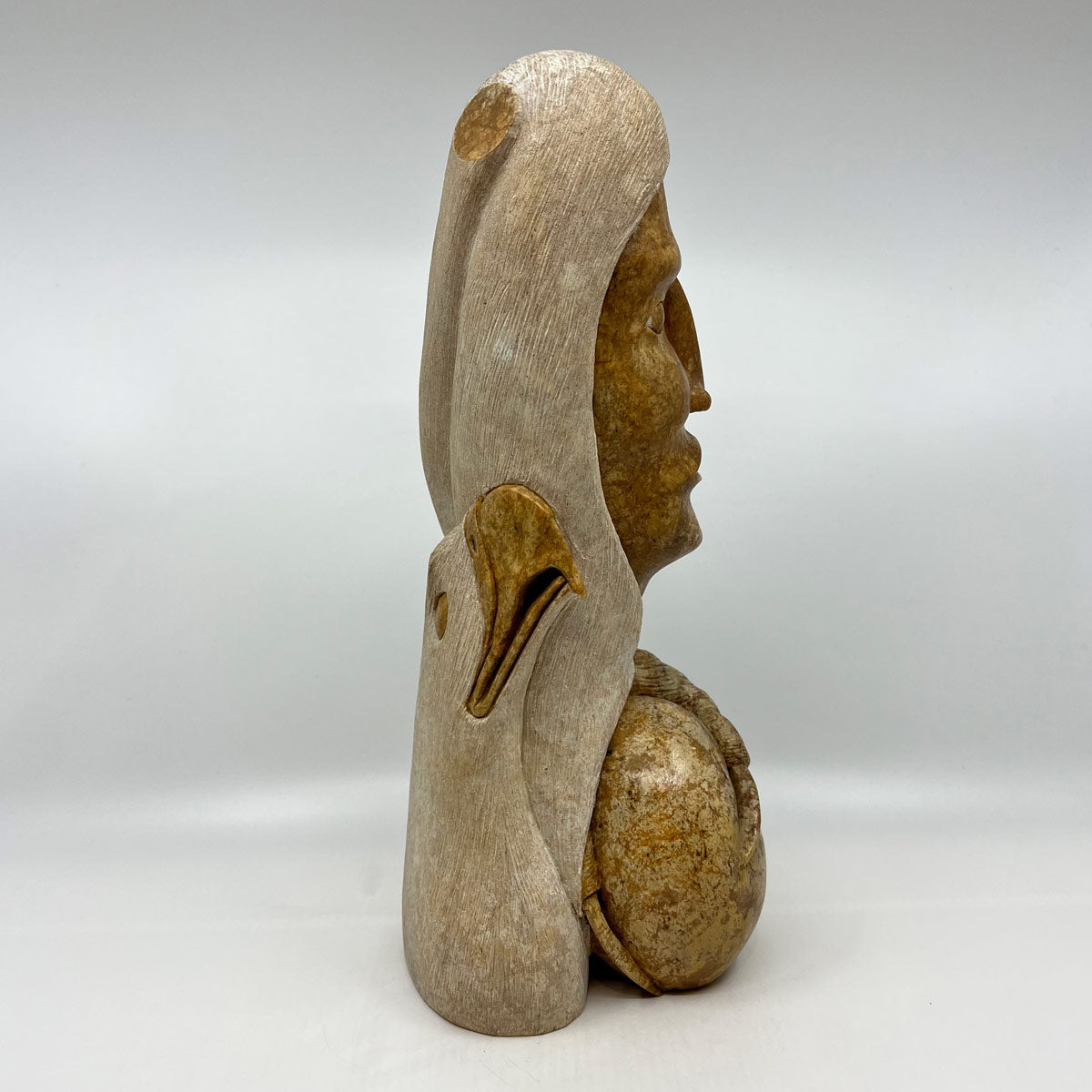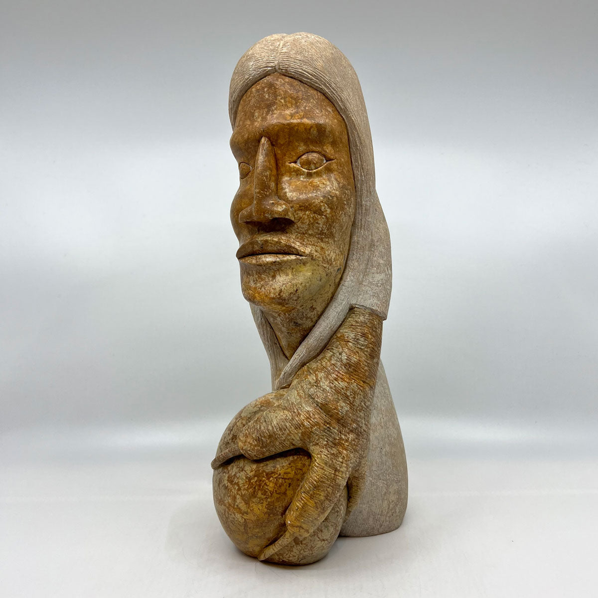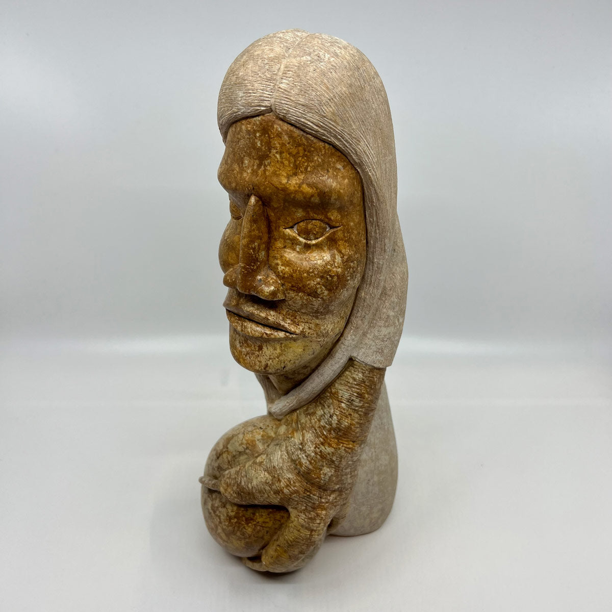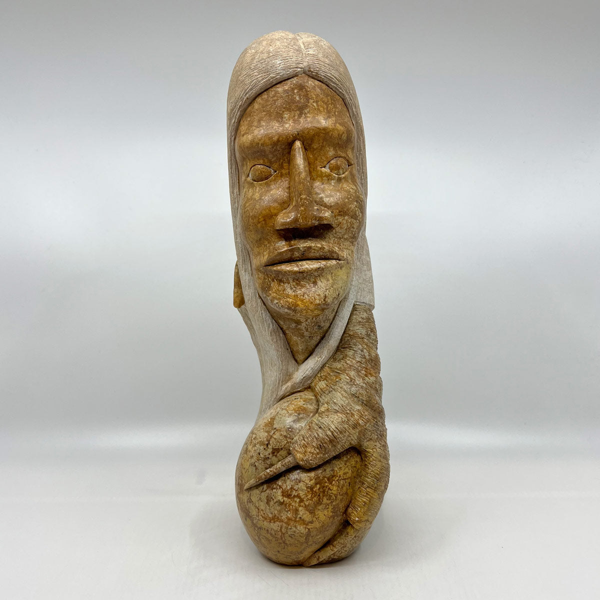 Todd Longboat, born in 1978 on the Six Nations Reserve in Ontario, Canada, is a highly regarded Indigenous artist known for his soapstone carvings. A member of the Wolf Clan of the Onondaga Nation, Longboat began his artistic journey at the age of 11, learning by observing his parents and older brother, both of whom were carvers. His work is deeply influenced by his cultural heritage, often depicting animals like wolves and eagles, which hold significant meaning within the clan systems of the Six Nations. His grandfather, Chief Jacob Thomas, was also a notable carver, further enriching Todd’s artistic lineage.