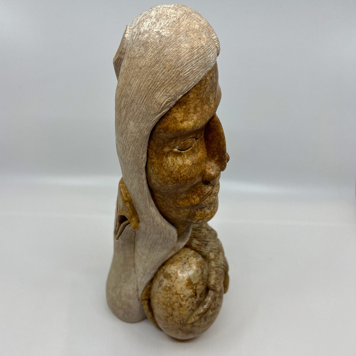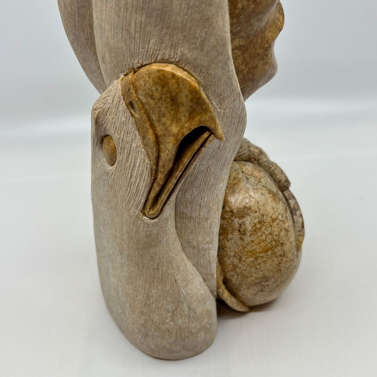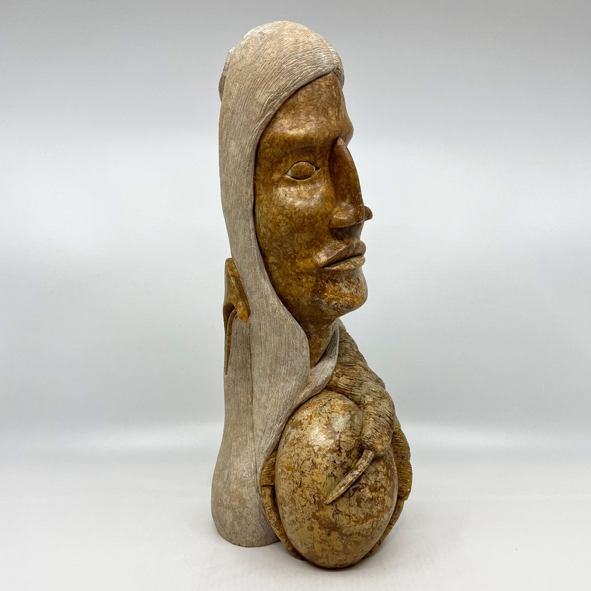 As a self-taught artist, Longboat’s medium of choice is primarily Brazilian soapstone. His sculptures are renowned for their intricate detail and the way they embody the spirit of his people. Longboat’s works typically focus on symbols and figures central to his culture, such as the eagle, turtle, and wolf, reflecting his deep connection to his ancestry and the natural world.