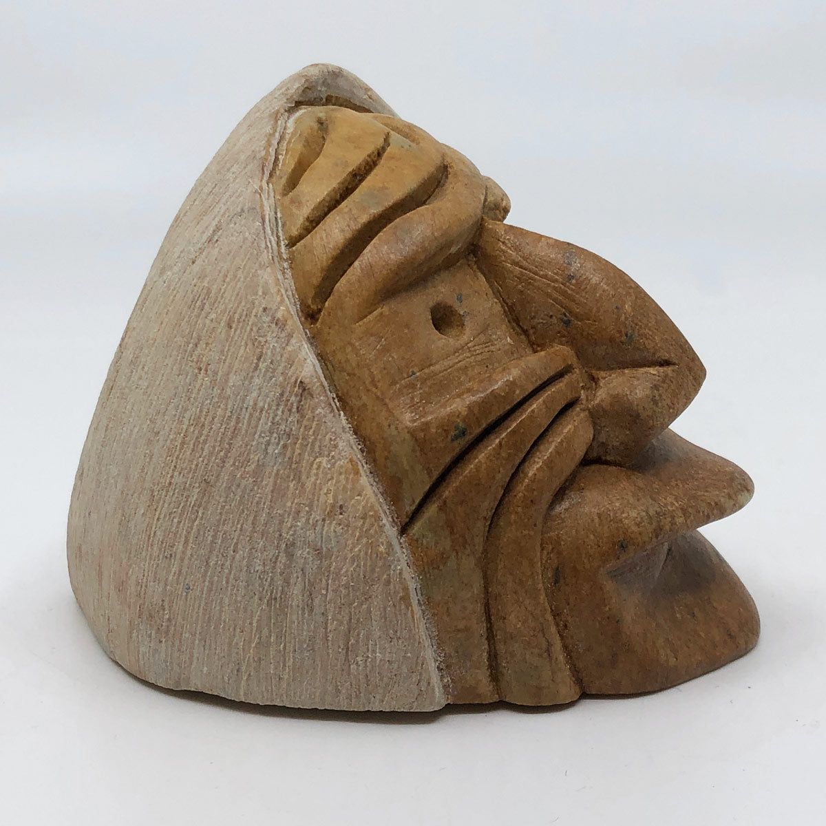 The False Face depicted on many of the carvings are of Guardians and used as Good Medicine for the Iroquois People. There are many different styles of faces: Blower, Spoon Mouth, Whistler, Protruding Tongue, Drooping Mouth, but the most common is the Broken Nose who is the Grandfather Mask. The masks are very sacred and important to the Iroquois People. They are not to be made fun of or belittled in any way. The Iroquois believe they are of the Supernatural and deserve the utmost respect in every sense.