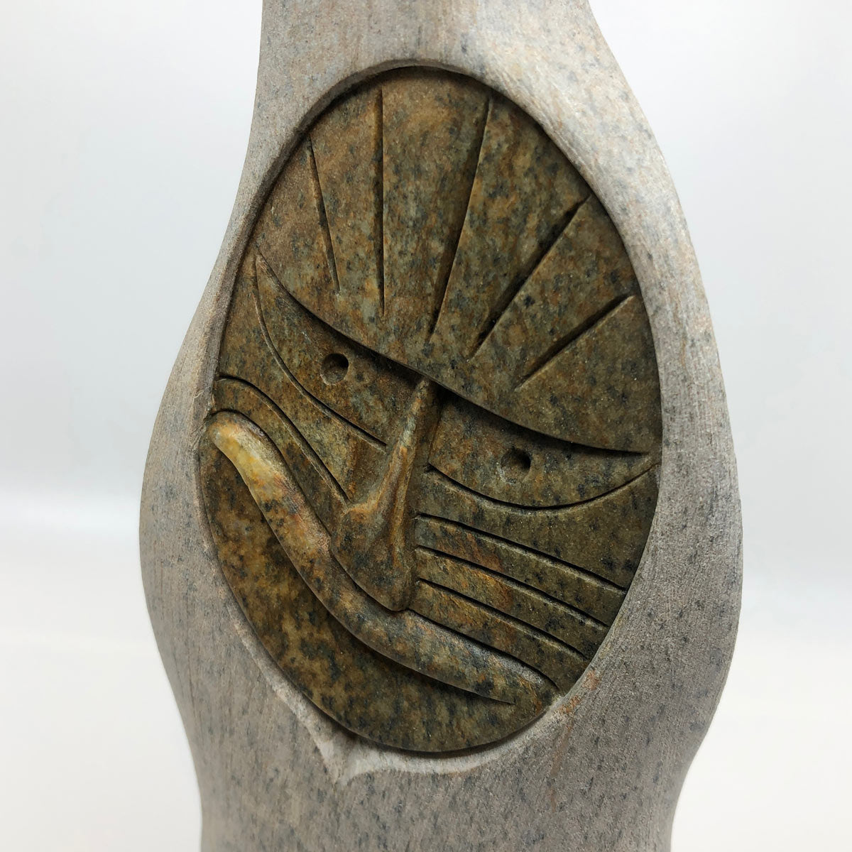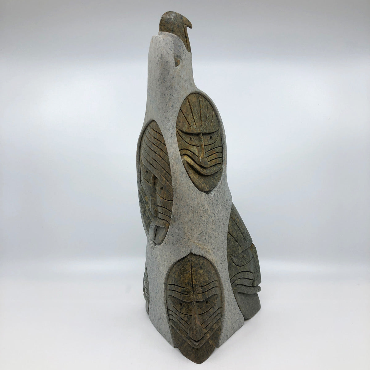 Cadaha Wenoda belongs to the Wolf Clan of the Onondaga Nation, part of the Six Nations Confederacy. Since childhood, Cadaha has been passionate about carving, drawing inspiration from the Elders' traditional stories passed down through generations. These stories are brought to life through their sculptures.