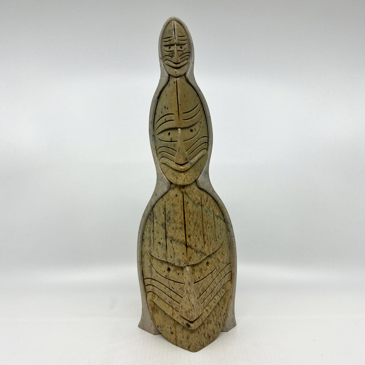 Cadaha Wenoda belongs to the Wolf Clan of the Onondaga Nation, part of the Six Nations Confederacy. Since childhood, Cadaha has been passionate about carving, drawing inspiration from the Elders' traditional stories passed down through generations. These stories are brought to life through their sculptures.