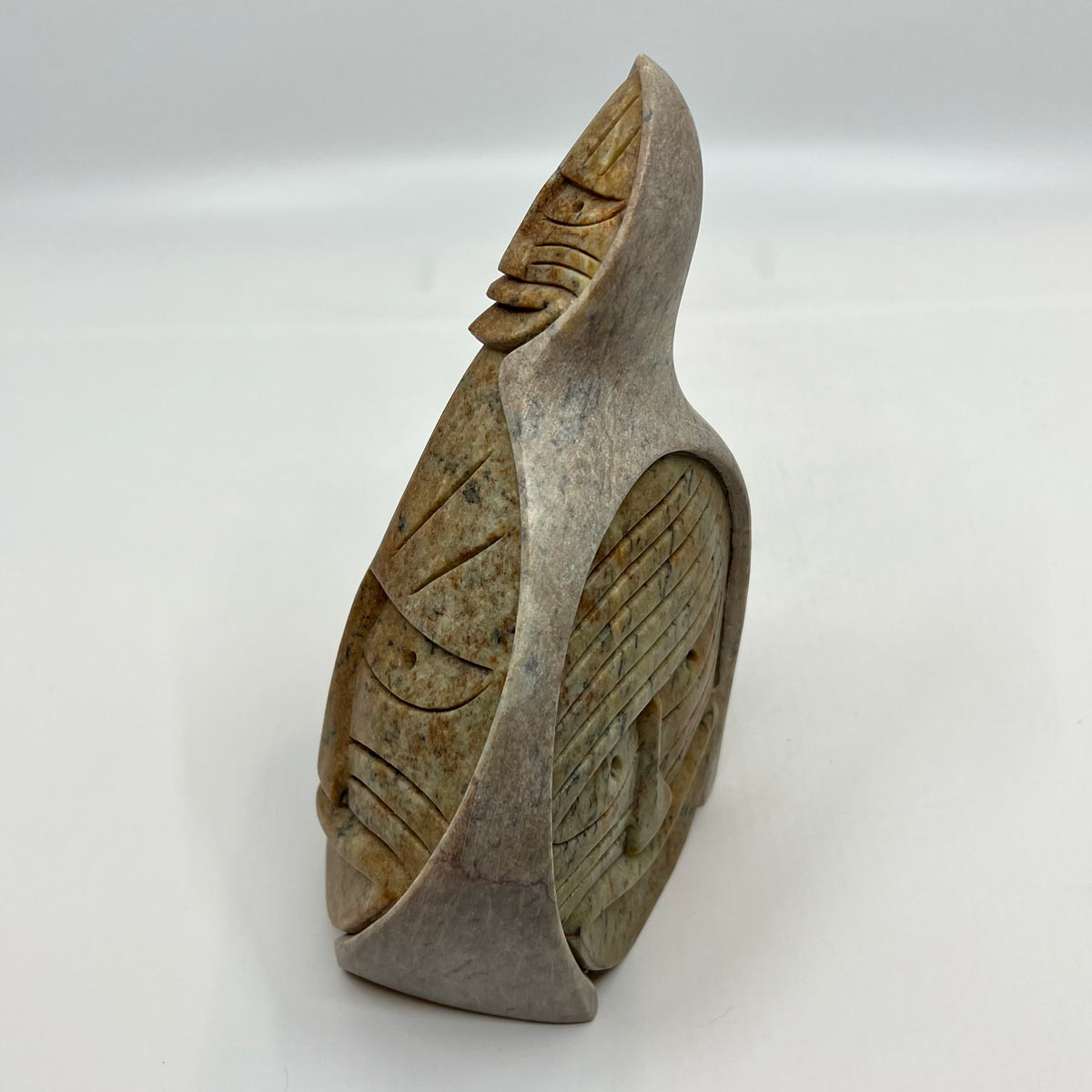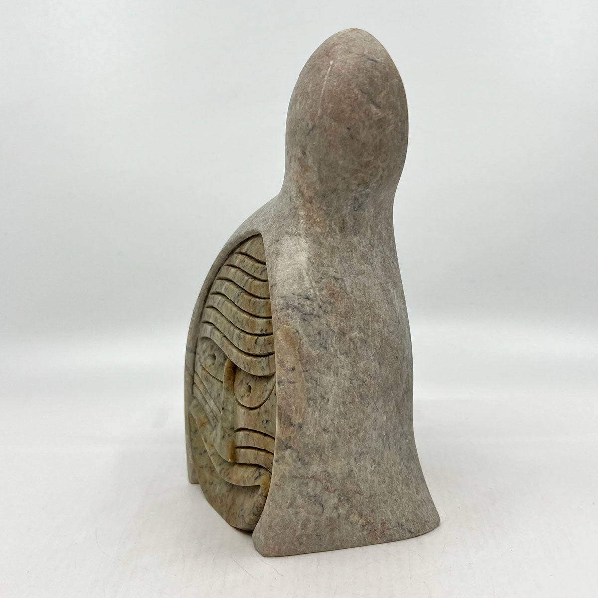 Cadaha Wenoda belongs to the Wolf Clan of the Onondaga Nation, part of the Six Nations Confederacy. Since childhood, Cadaha has been passionate about carving, drawing inspiration from the Elders' traditional stories passed down through generations. These stories are brought to life through their sculptures.