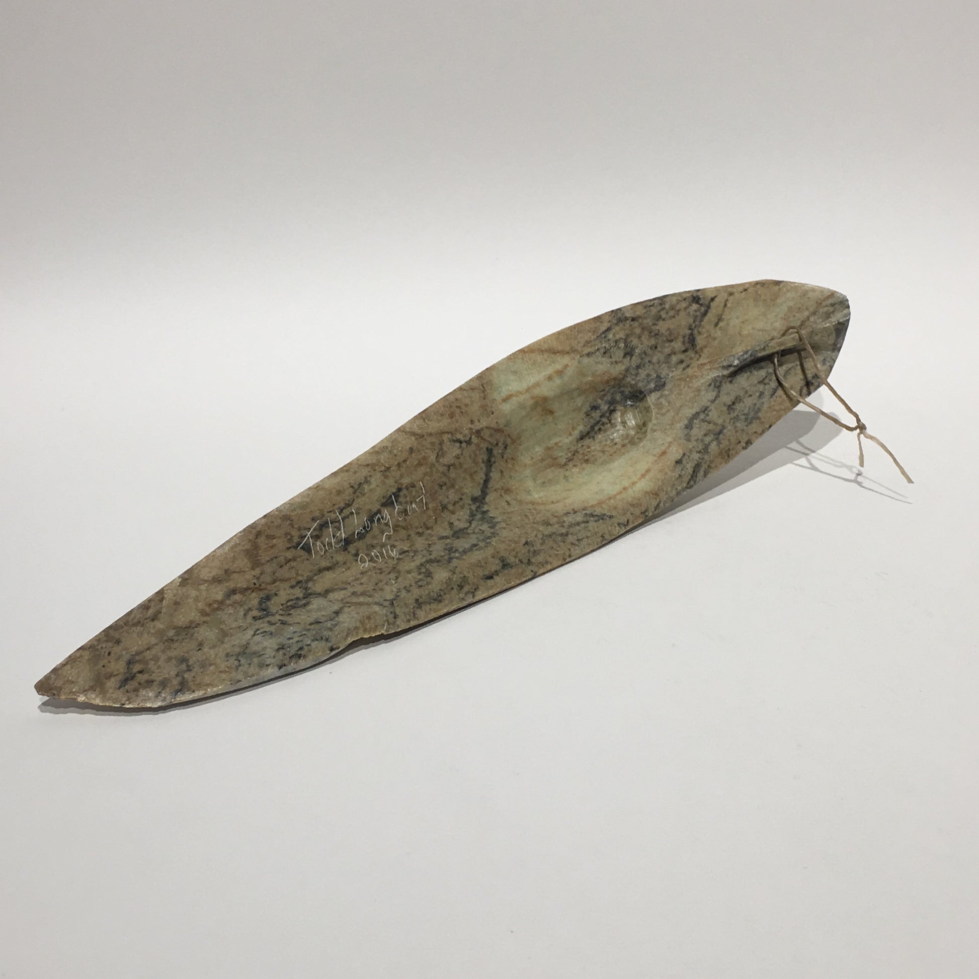 Todd Longboat, born in 1978 on the Six Nations Reserve in Ontario, Canada, is a highly regarded Indigenous artist known for his soapstone carvings. A member of the Wolf Clan of the Onondaga Nation, Longboat began his artistic journey at the age of 11, learning by observing his parents and older brother, both of whom were carvers. His work is deeply influenced by his cultural heritage, often depicting animals like wolves and eagles, which hold significant meaning within the clan systems of the Six Nations. His grandfather, Chief Jacob Thomas, was also a notable carver, further enriching Todd’s artistic lineage.
