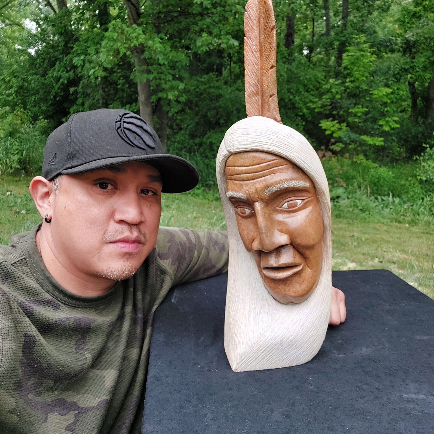 Todd Longboat, born in 1978 on the Six Nations Reserve in Ontario, Canada, is a highly regarded Indigenous artist known for his soapstone carvings. A member of the Wolf Clan of the Onondaga Nation, Longboat began his artistic journey at the age of 11, learning by observing his parents and older brother, both of whom were carvers. His work is deeply influenced by his cultural heritage, often depicting animals like wolves and eagles, which hold significant meaning within the clan systems of the Six Nations. His grandfather, Chief Jacob Thomas, was also a notable carver, further enriching Todd’s artistic lineage.