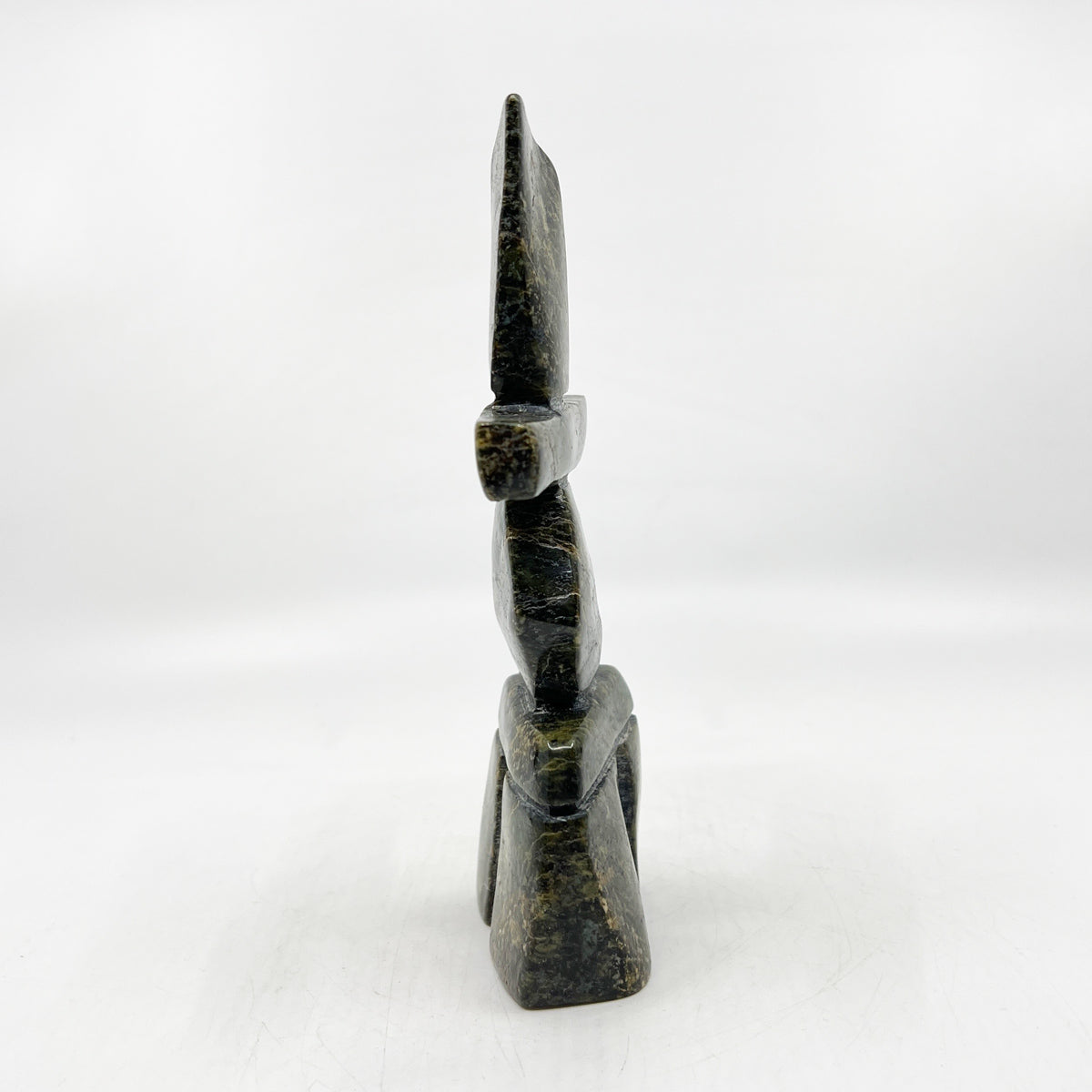 Matt Oshutsiaq’s Inukshuks are meticulously crafted and polished to a mirror shine, highlighting the beauty and texture of the serpentine stone used to sculpt them.
