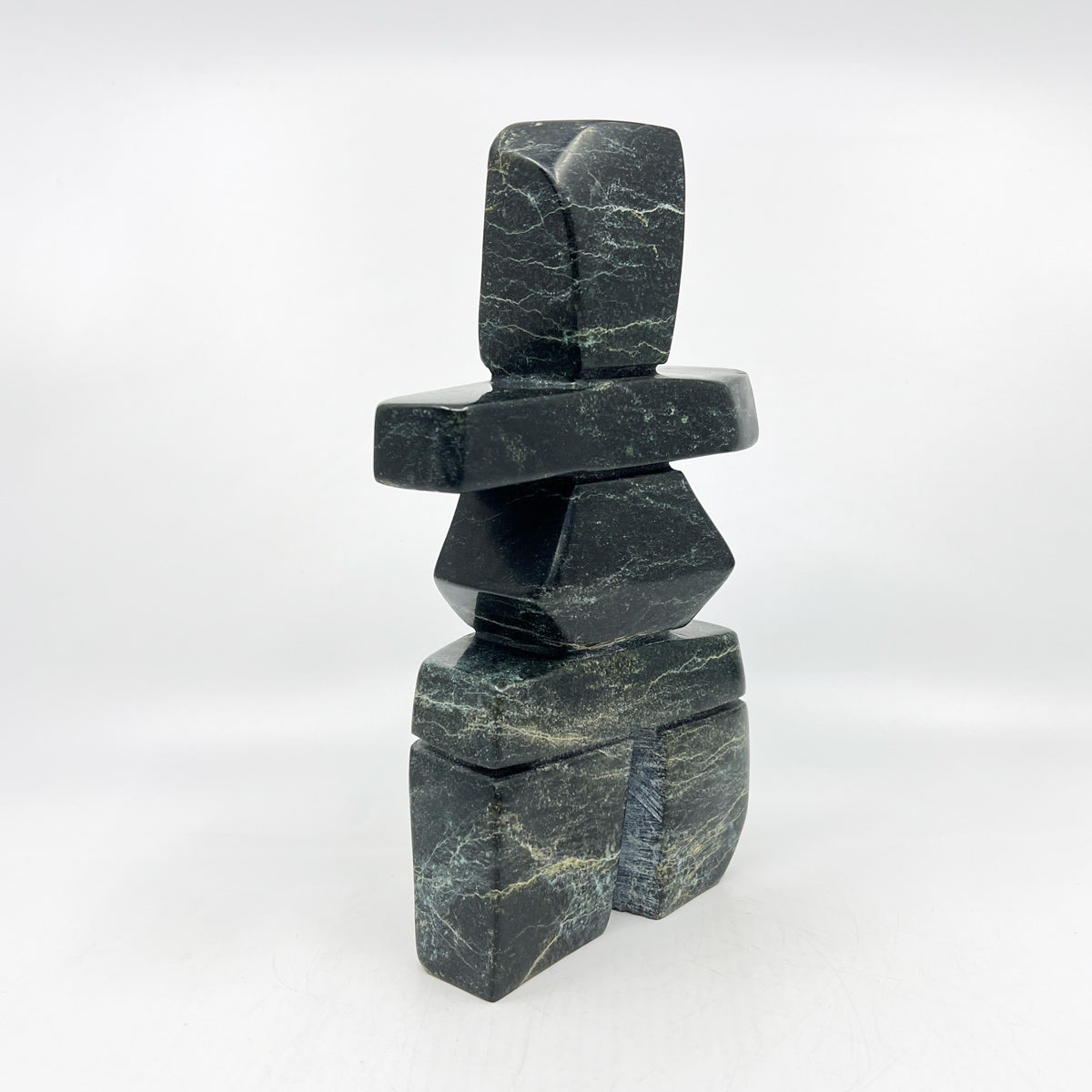Matt Oshutsiaq’s Inukshuks are meticulously crafted and polished to a mirror shine, highlighting the beauty and texture of the serpentine stone used to sculpt them.