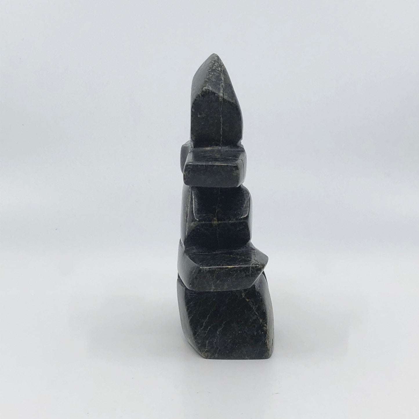 Oqittuq Shaa is an Inuit artist from Cape Dorset, Nunavut, known for his soapstone carvings, particularly those depicting inukshuks and other iconic Arctic forms. His work is a reflection of life in the Canadian Arctic, capturing the spirit and environment of the Inuit culture. Shaa works primarily with serpentine stone, a material favored by many Inuit sculptors for its durability and the way it polishes to a high shine. His pieces often blend traditional Inuit themes with a modern aesthetic, making them both culturally significant and visually striking.