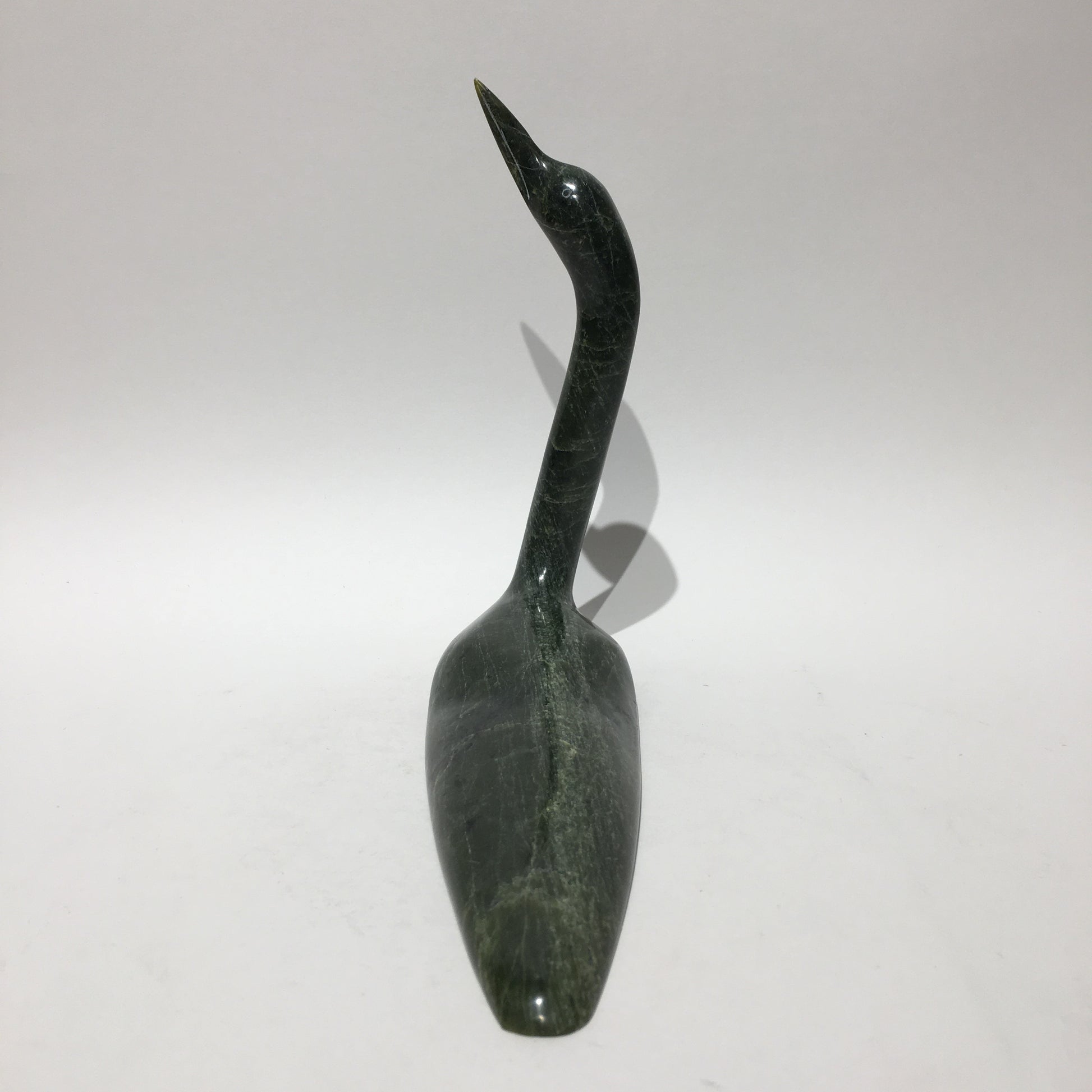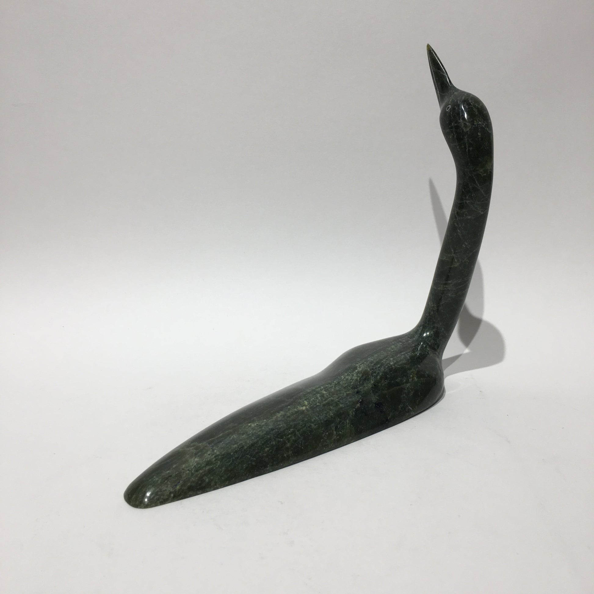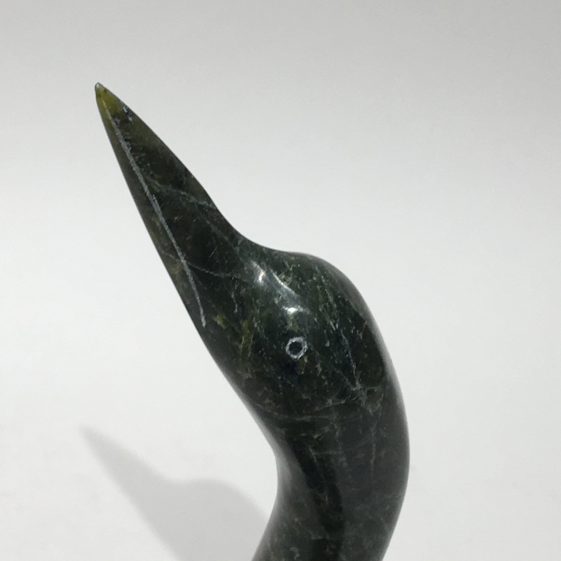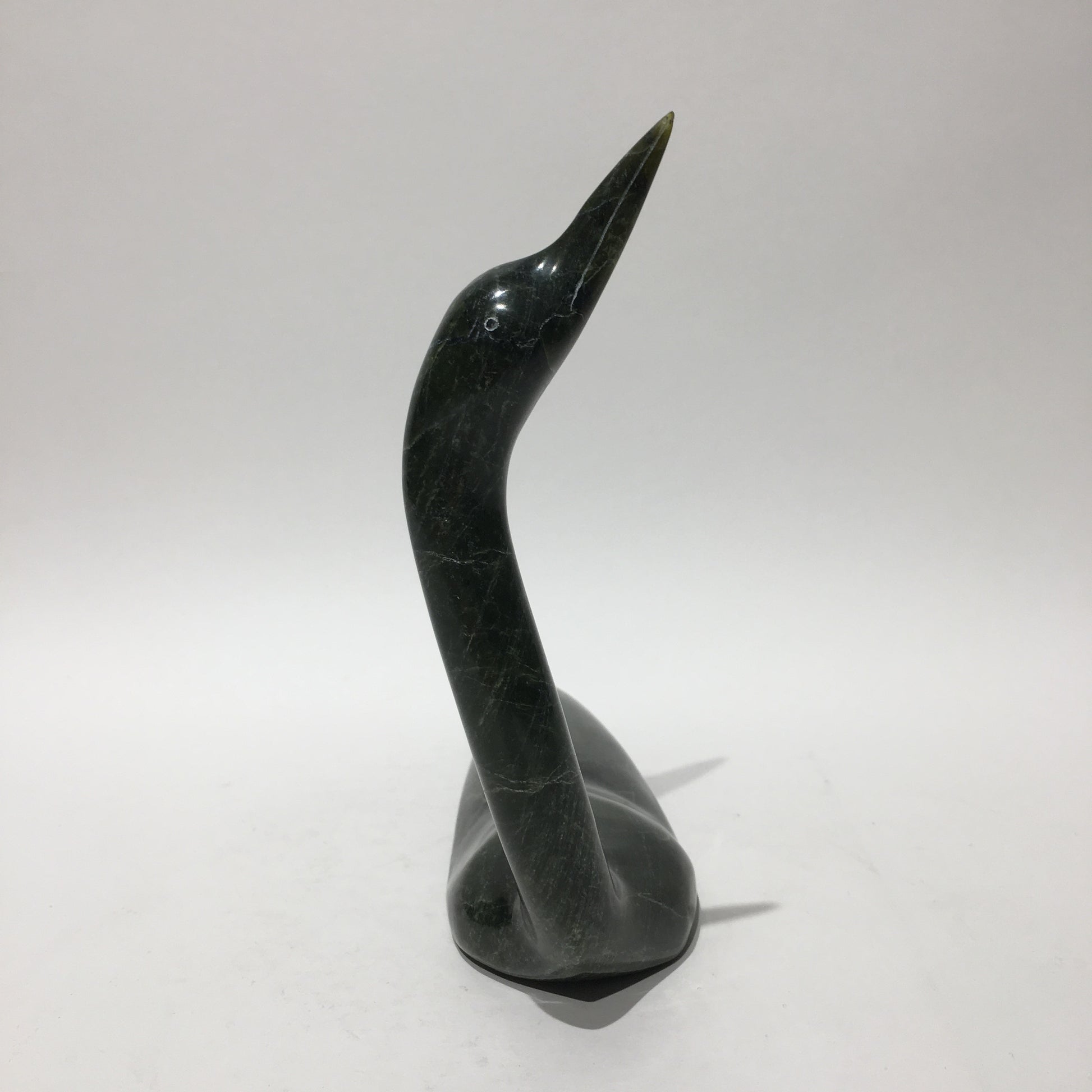Ningeosiak is one of Kinngait’s only full-time female carvers, using both manual and power tools to carve delicate forms out of serpentine and stone. She finishes each of her sculptures off with a high shine to further accentuate their grace and elegance. Ningeosiak has participated in numerous exhibitions across Canada and internationally, and her work represented in major public collections such as the National Gallery of Canada.