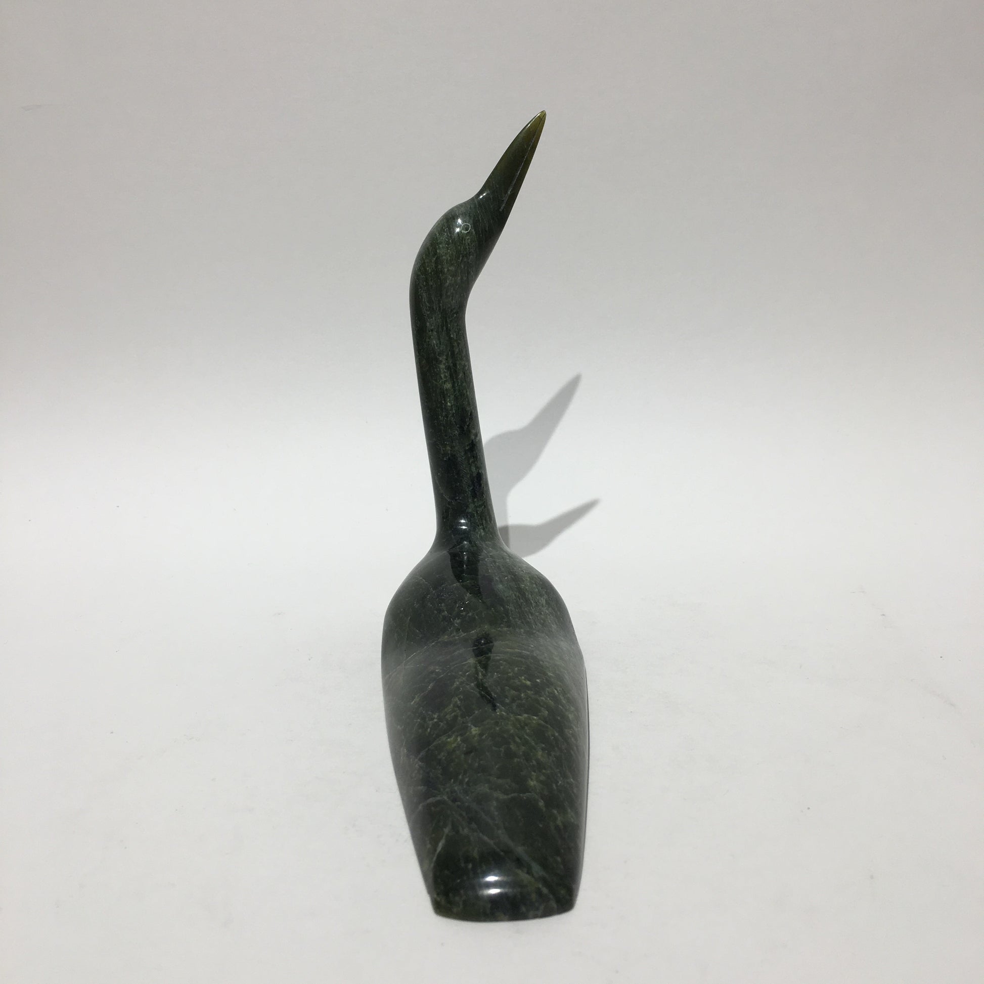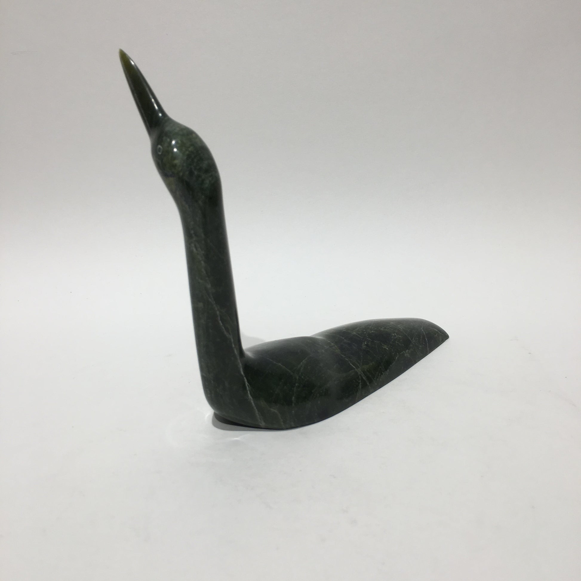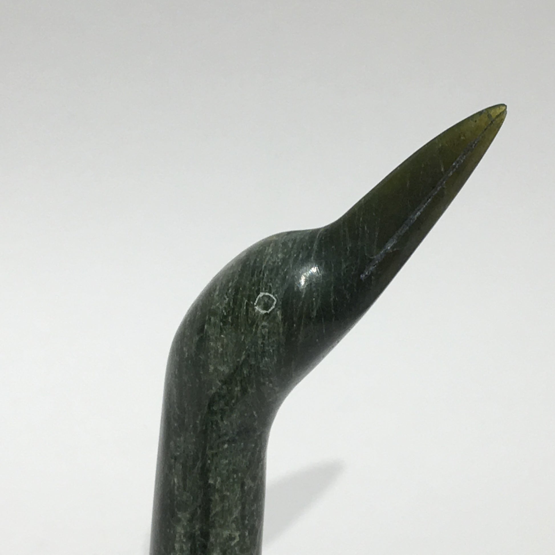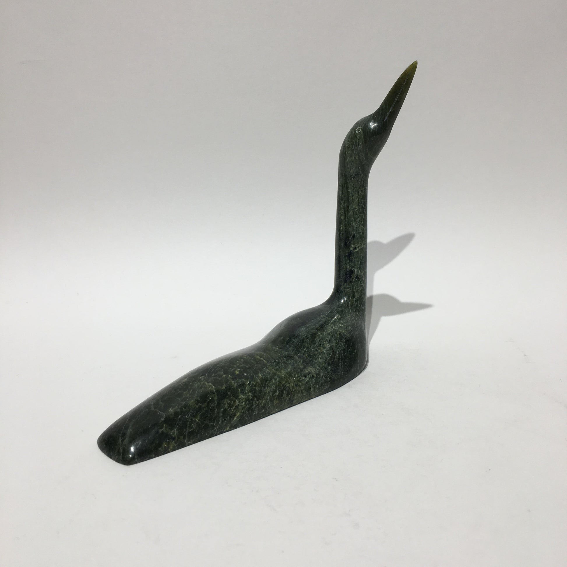 Ningeosiak is one of Kinngait’s only full-time female carvers, using both manual and power tools to carve delicate forms out of serpentine and stone. She finishes each of her sculptures off with a high shine to further accentuate their grace and elegance. Ningeosiak has participated in numerous exhibitions across Canada and internationally, and her work represented in major public collections such as the National Gallery of Canada.