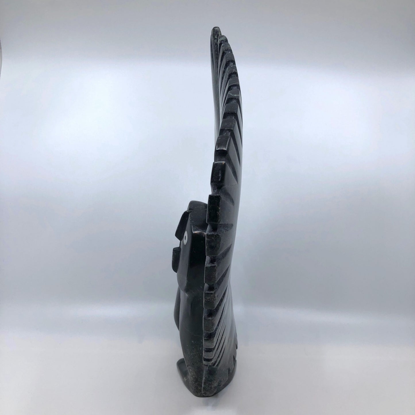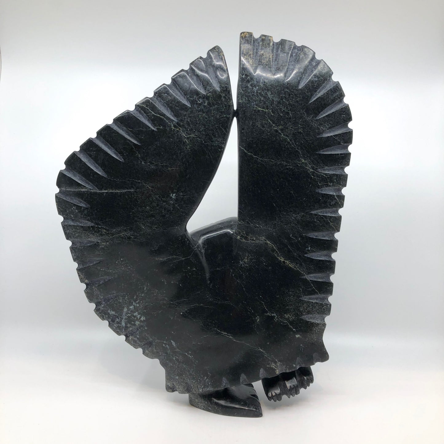 He carries forward a long and rich heritage and culture in his carving. His grandfather, Kiakshuk, was a well-respected member of the first generation of Cape Dorset graphic and sculpture artists whose work was marketed in the “South”. Lukta Qiatsuq, Palaya’s father, continued the tradition, carving complex spirit, transformation, and