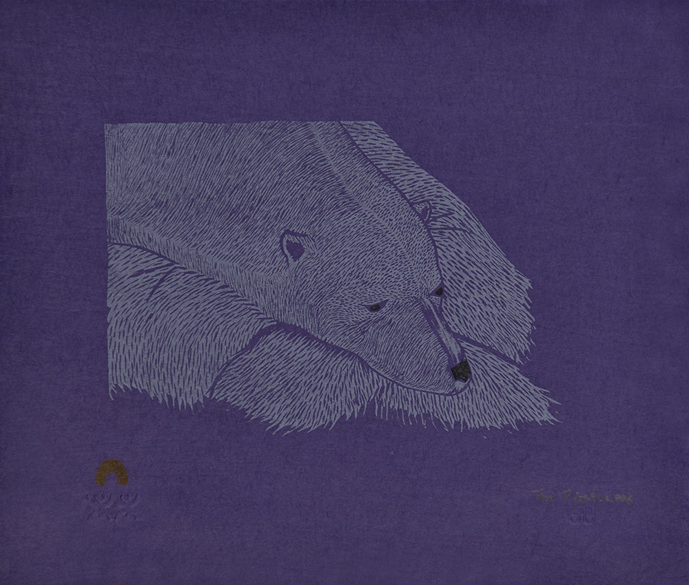 Tim Pitsiulak was an Inuit artist born in 1967 in Kimmirut, Nunavut, and was inspired by his aunt, Kenojuak Ashevak, a prominent figure in Inuit art. Although he initially trained in sculpture and jewelry making, Pitsiulak found his true calling in drawing and printmaking. He gained recognition in 2005 with his first print, Caribou Migration, marking the start of a successful career that blended traditional Inuit motifs with modern techniques. His artwork, characterized by detailed depictions of Arctic wildlife and Inuit life, was deeply influenced by his experiences as a hunter and his connection to the land.