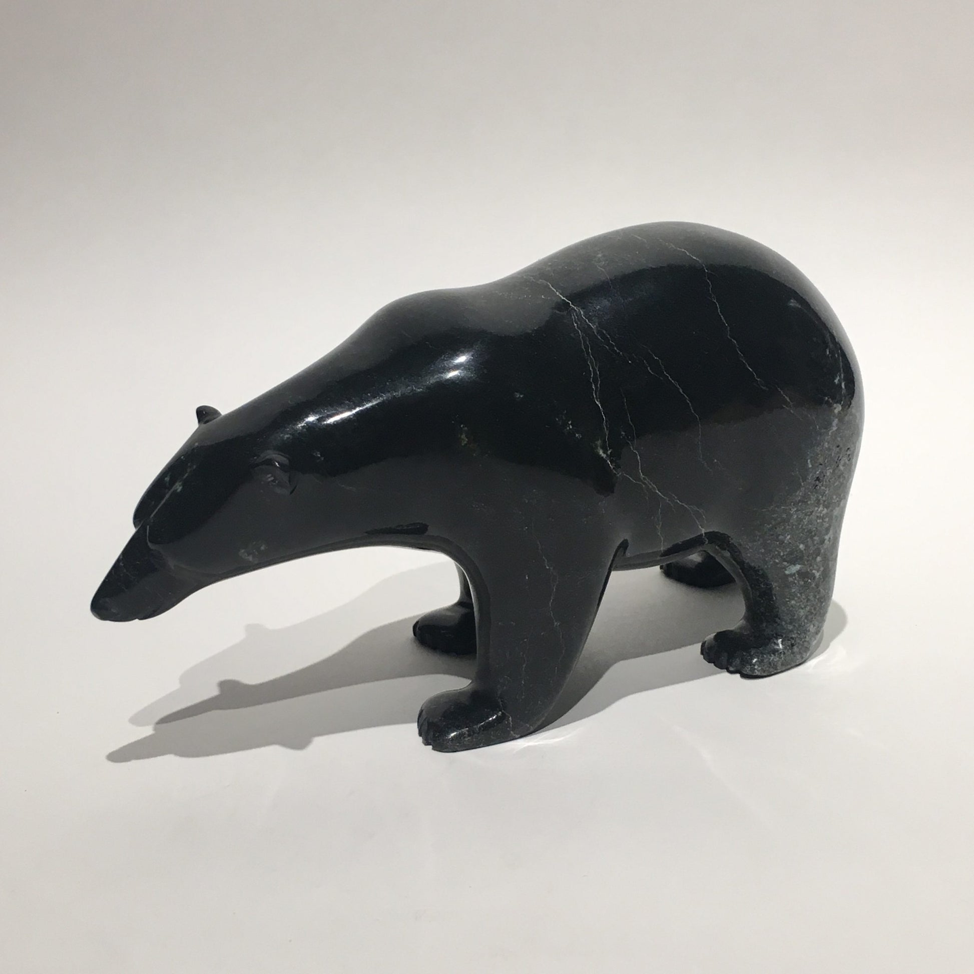 Tim Pee’s work reflects a deep connection to his Inuit heritage and the Arctic environment. His carvings are marked by their realistic proportions and the unique character he imparts to each piece. Over the years, his polar bear sculptures have gained significant recognition and are featured in numerous private and public collections, including the Kenosha Public Museum. Tim has also participated in various exhibitions, showcasing the cultural and artistic richness of Inuit traditions.