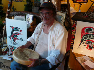 Danny Dennis (1951–2012) was a self-taught Gitxsan First Nations artist known for his diverse talents in painting, printmaking, carving, and jewelry making. Born in Port Essington, British Columbia, Dennis was primarily raised in Hazelton, BC, and was of Tsimshian heritage. He began his professional art career in 1978 and became well-known for his unique works, which combined traditional First Nations motifs with his own modern interpretations.