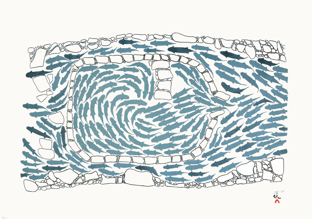 Simionie began to draw around 2010. He was inspired by his wife, well known artist Ningiukulu Teevee and his work is influenced by memories of watching his father Jamasie Teevee draw when Simionie was growing up. Simionie also used to work in the Kinngait Studios as an assistant lithographer in the late 1970’s and early 80’s. Aside from his visual art sensibilities, Simionie is a superb musician and plays several instruments with his band ‘Sikusiilaq Band.