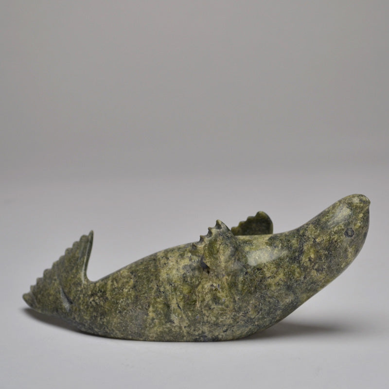 Ningeosiak is one of Kinngait’s only full-time female carvers, using both manual and power tools to carve delicate forms out of serpentine and stone. She finishes each of her sculptures off with a high shine to further accentuate their grace and elegance. Ningeosiak has participated in numerous exhibitions across Canada and internationally, and her work represented in major public collections such as the National Gallery of Canada.