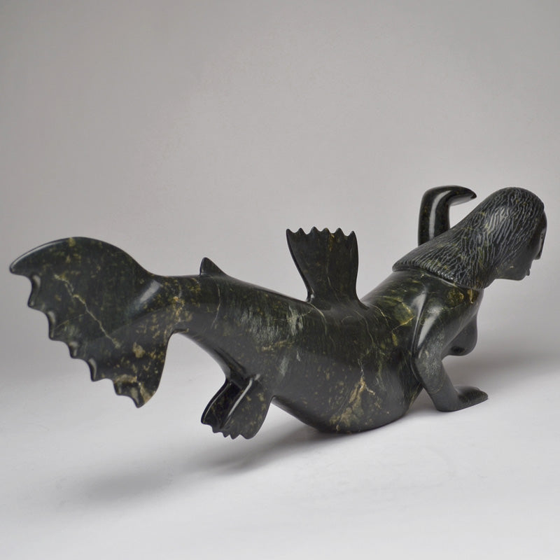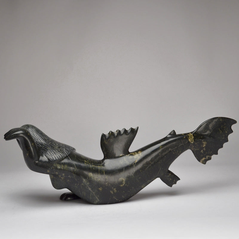 Ashevak Adla, born on February 22, 1977, in Iqaluit, Nunavut, is a prominent Inuit carver known for his detailed and polished serpentine stone sculptures. Raised in Cape Dorset, he comes from a lineage of esteemed artists; his maternal grandfather, Aoudla Pee, and paternal grandfather, Kalai Adla, were both influential carvers. Inspired by watching his grandfather carve birds, Adla began his own carving journey at the age of eleven, starting with simple bird and seal heads.