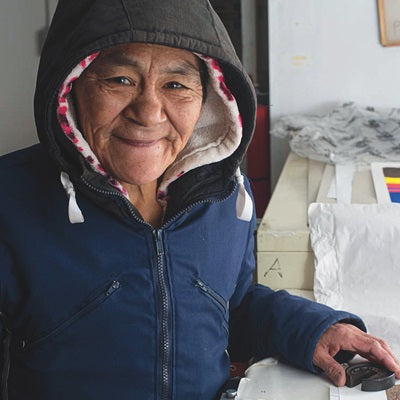 Kudluajuk Ashoona, born in 1930 in Kinngait, Nunavut, Canada, is a renowned Inuit artist celebrated for her contributions to printmaking and drawing. Growing up in the traditional Inuit lifestyle, her early experiences deeply influenced her artistic vision.