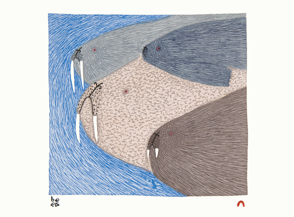 Her artworks often feature themes related to Inuit mythology, daily life, and the natural environment, showcasing a blend of traditional and modern perspectives. Teevee’s prints and drawings are known for their intricate details and vibrant depictions of Inuit life and folklore.