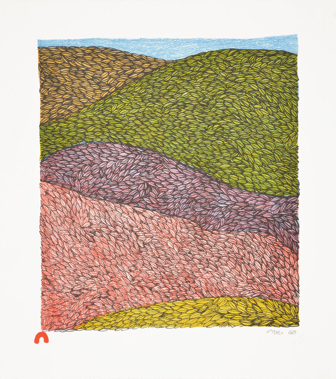 Her artworks often feature themes related to Inuit mythology, daily life, and the natural environment, showcasing a blend of traditional and modern perspectives. Teevee’s prints and drawings are known for their intricate details and vibrant depictions of Inuit life and folklore.