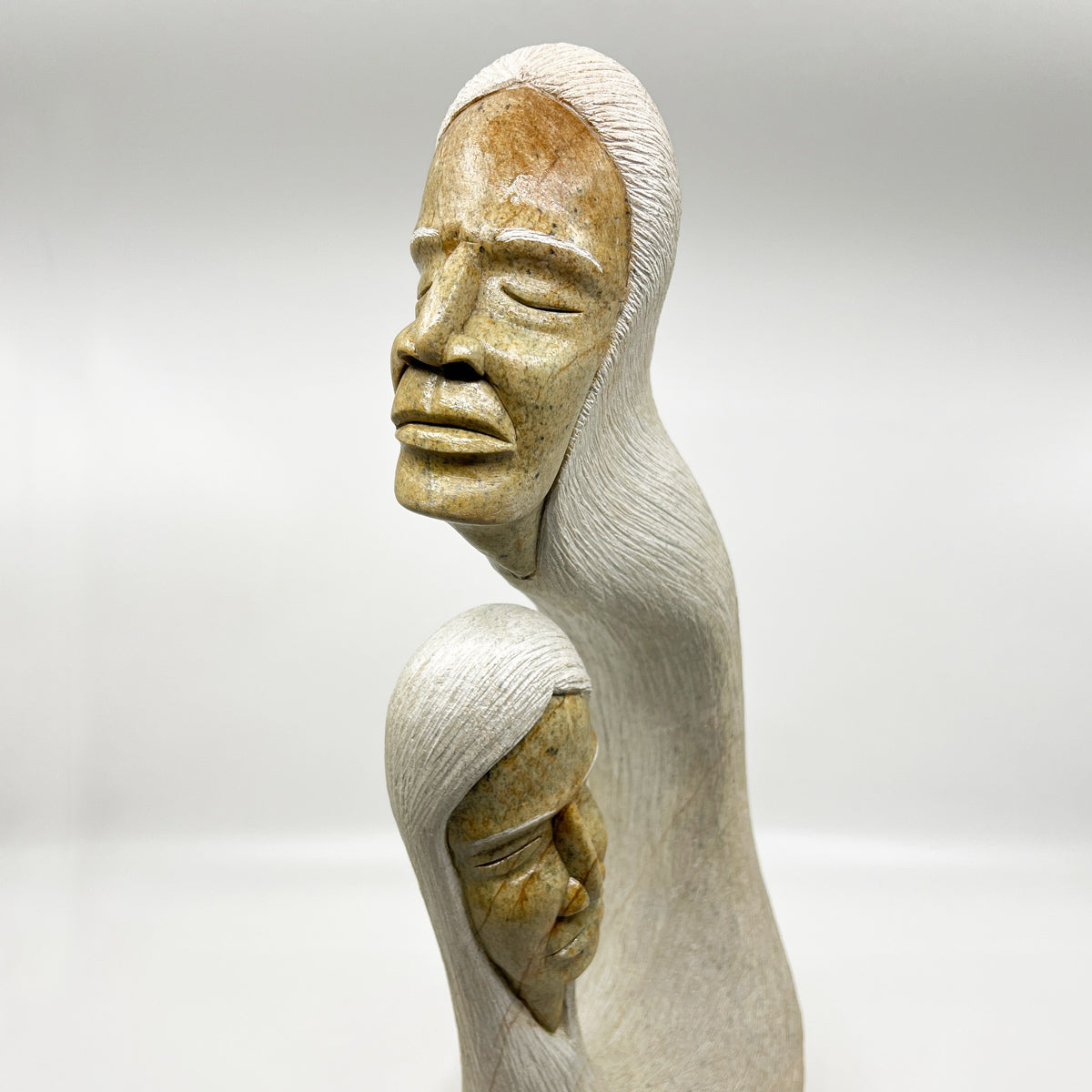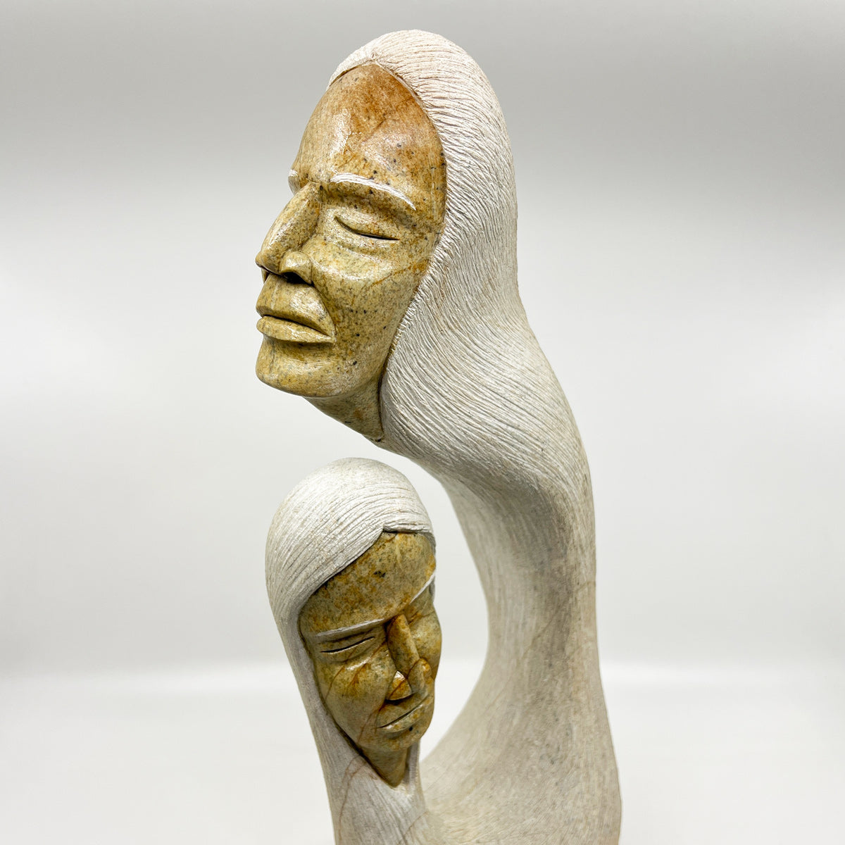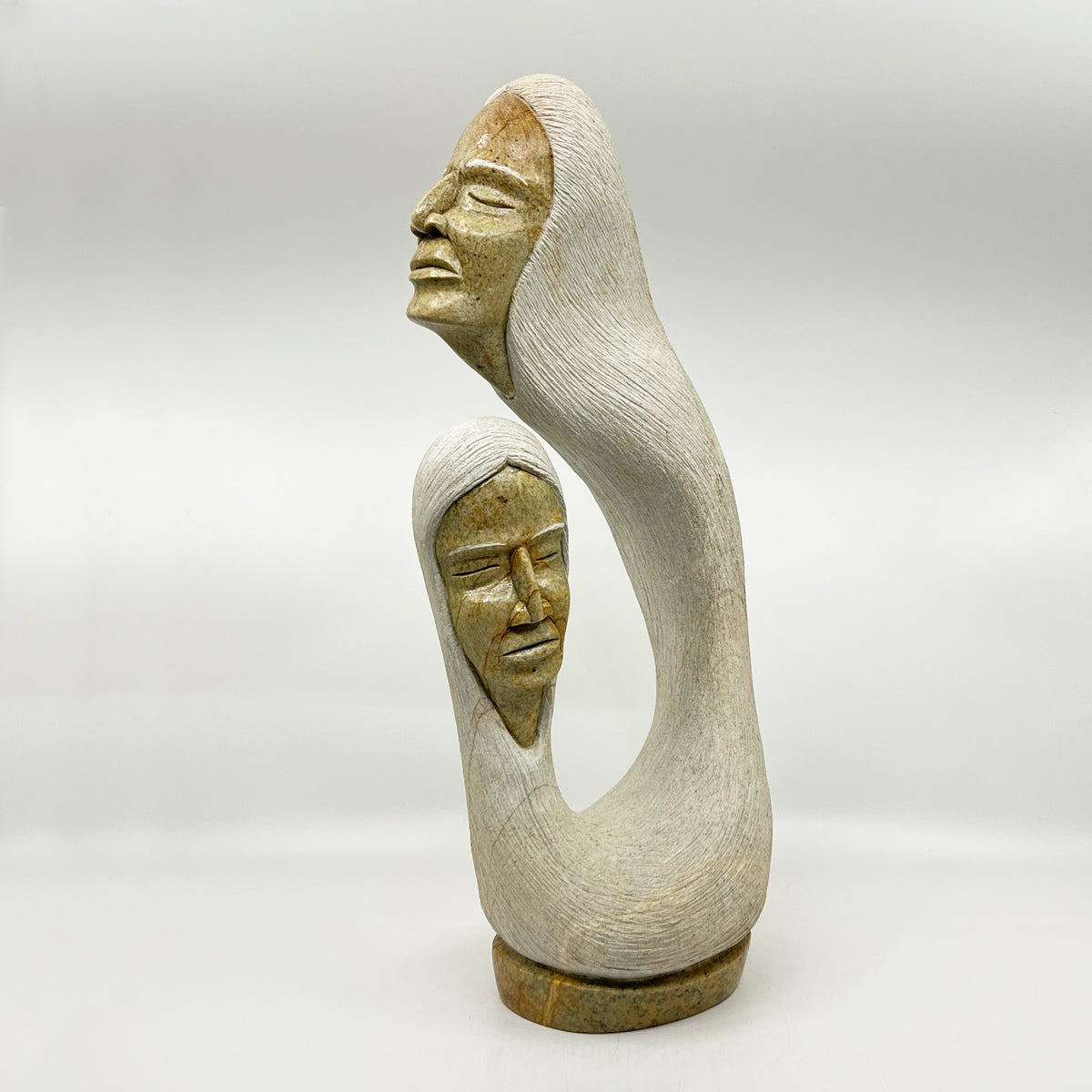 Todd Longboat, born in 1978 on the Six Nations Reserve in Ontario, Canada, is a highly regarded Indigenous artist known for his soapstone carvings. A member of the Wolf Clan of the Onondaga Nation, Longboat began his artistic journey at the age of 11, learning by observing his parents and older brother, both of whom were carvers. His work is deeply influenced by his cultural heritage, often depicting animals like wolves and eagles, which hold significant meaning within the clan systems of the Six Nations. His grandfather, Chief Jacob Thomas, was also a notable carver, further enriching Todd’s artistic lineage.