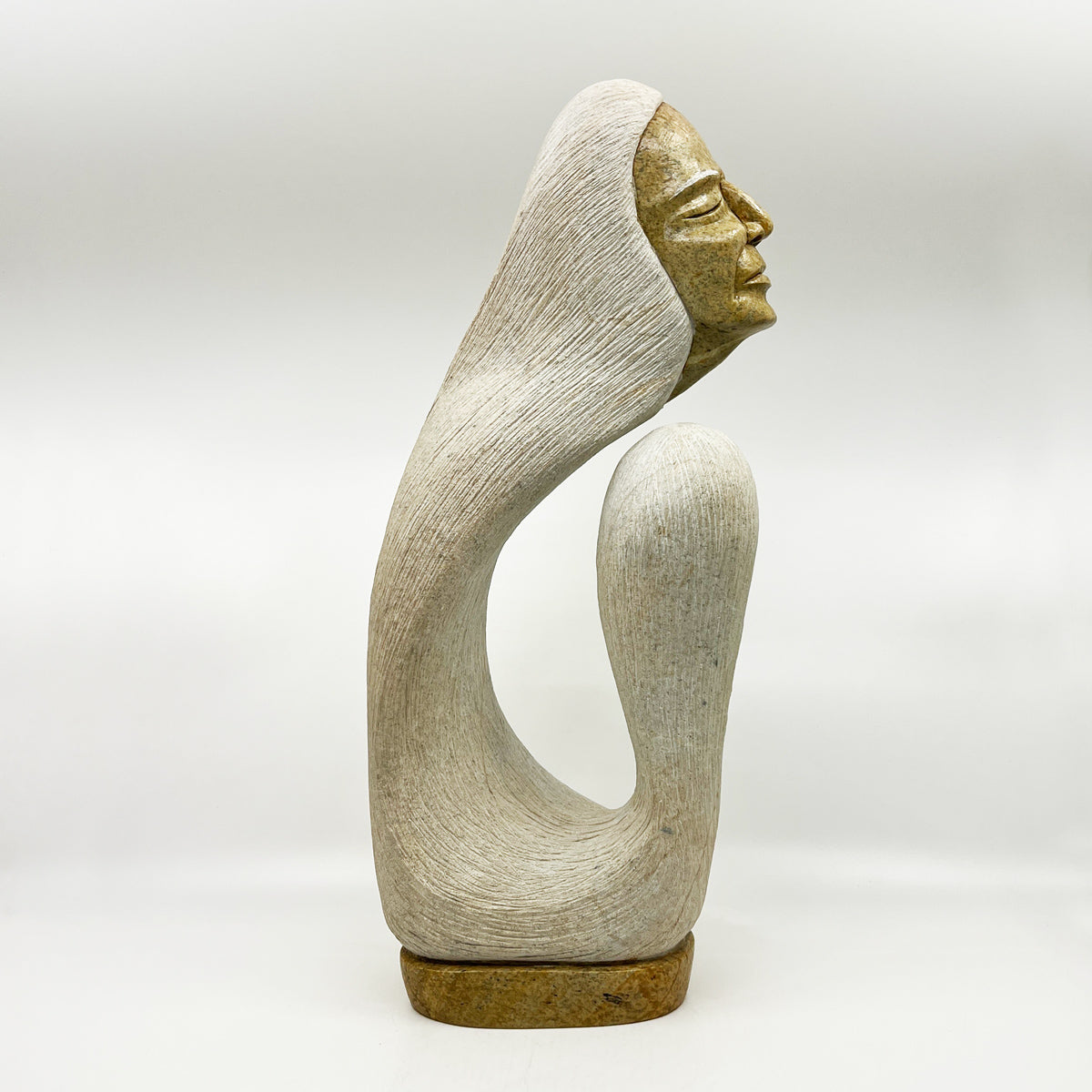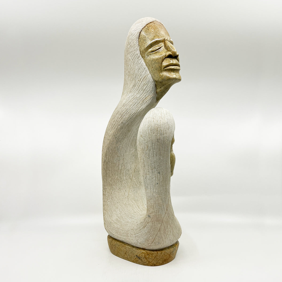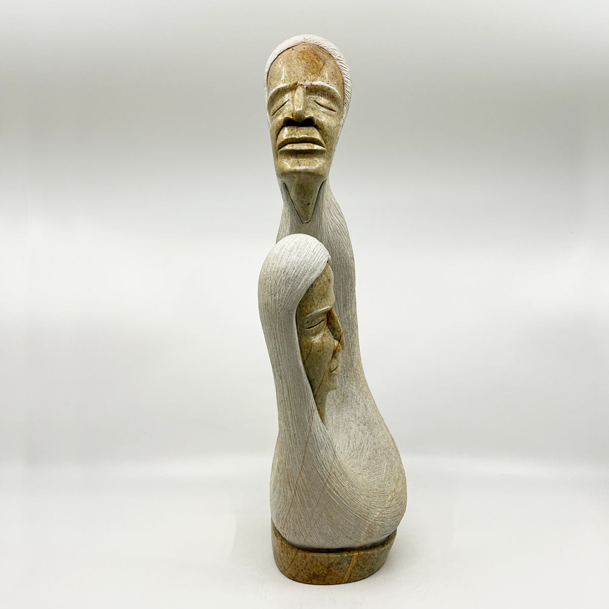 Todd Longboat, born in 1978 on the Six Nations Reserve in Ontario, Canada, is a highly regarded Indigenous artist known for his soapstone carvings. A member of the Wolf Clan of the Onondaga Nation, Longboat began his artistic journey at the age of 11, learning by observing his parents and older brother, both of whom were carvers. His work is deeply influenced by his cultural heritage, often depicting animals like wolves and eagles, which hold significant meaning within the clan systems of the Six Nations. His grandfather, Chief Jacob Thomas, was also a notable carver, further enriching Todd’s artistic lineage.