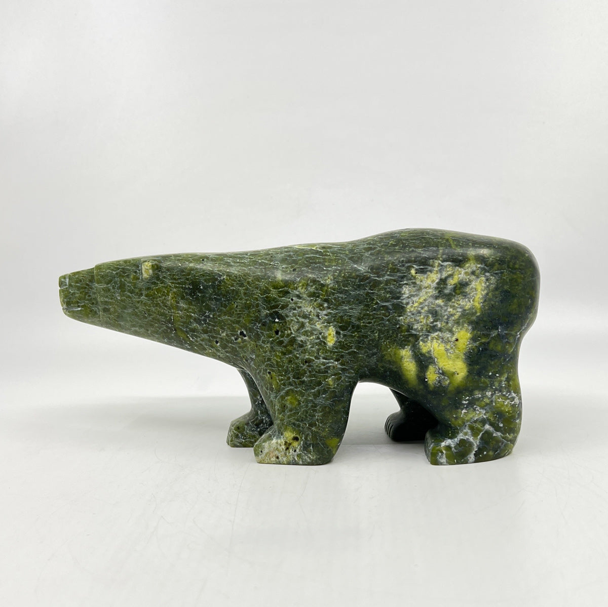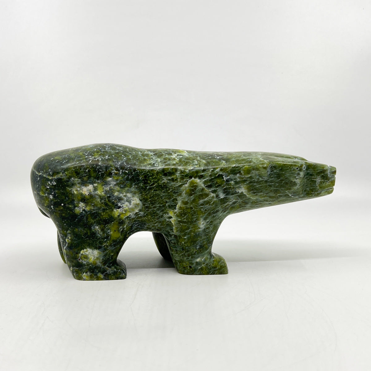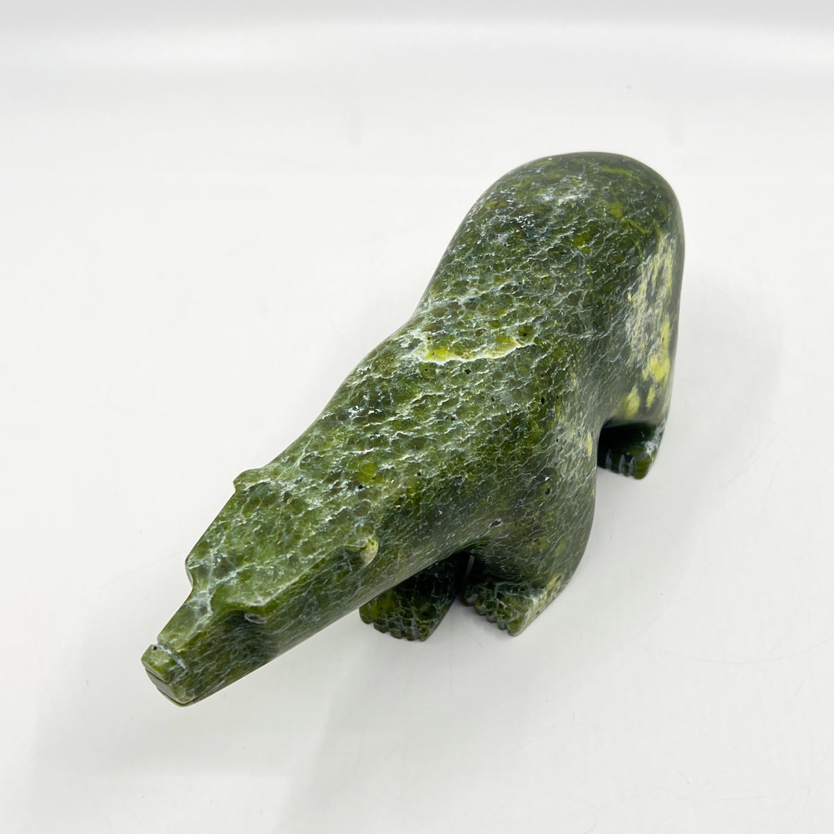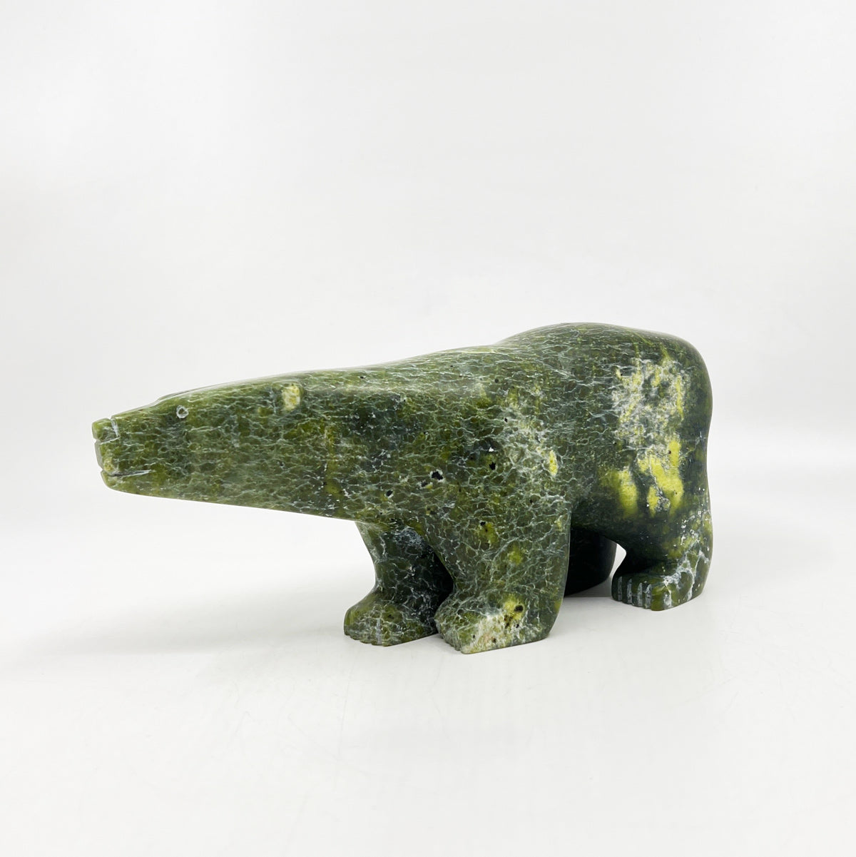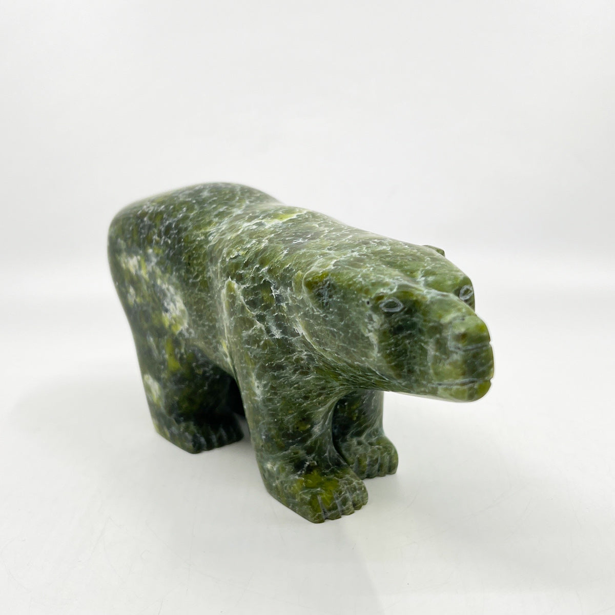 Abraham Manning is an Inuit artist from Kinngait (Cape Dorset), renowned for his carvings of Dancing and Walking Bears and other traditional Inuit subjects. He works primarily with locally sourced stones, including serpentine and marble, which he transforms into sculptures that balance strength, movement, and elegance.